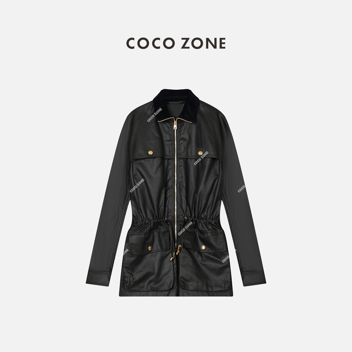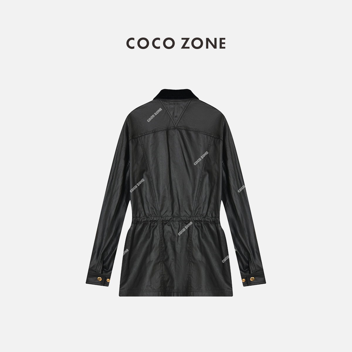 刘一一&COCO ZONE复古宽松中长款外套抽绳收腰立领夹克 23C19411