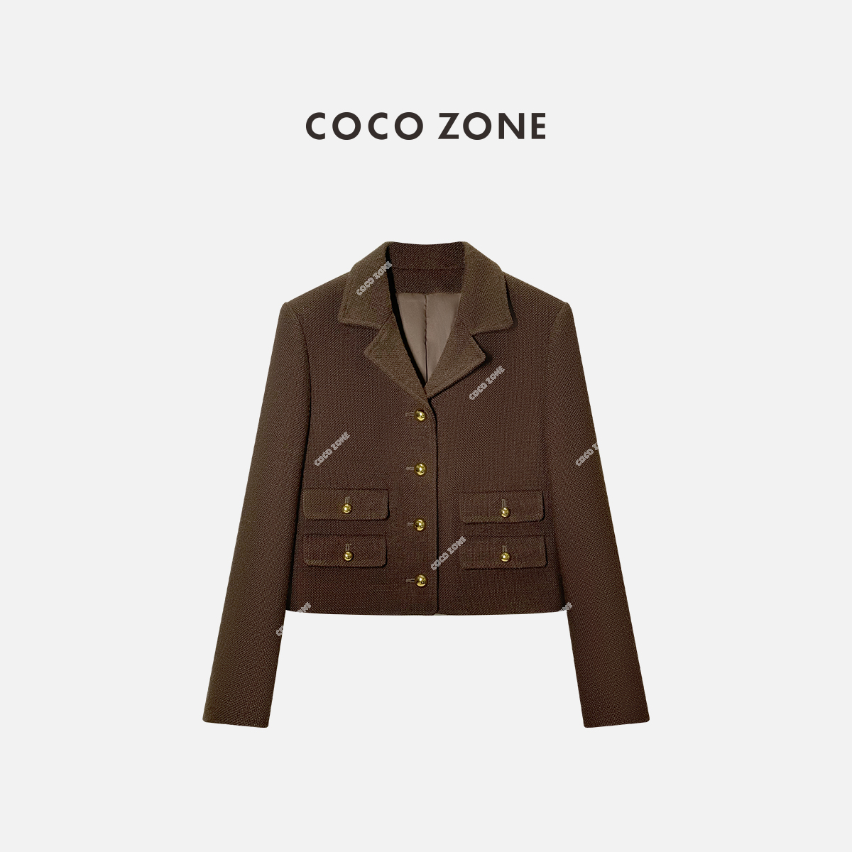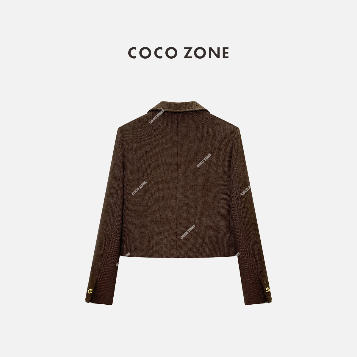 COCO ZONE 时尚翻驳领短款外套气质纽扣设计上衣CC2C1516