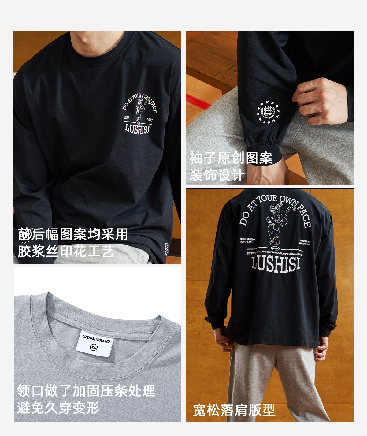 LUSHISI【克服】主题速干长袖运动T恤吸湿排汗网眼透气秋款肌理感