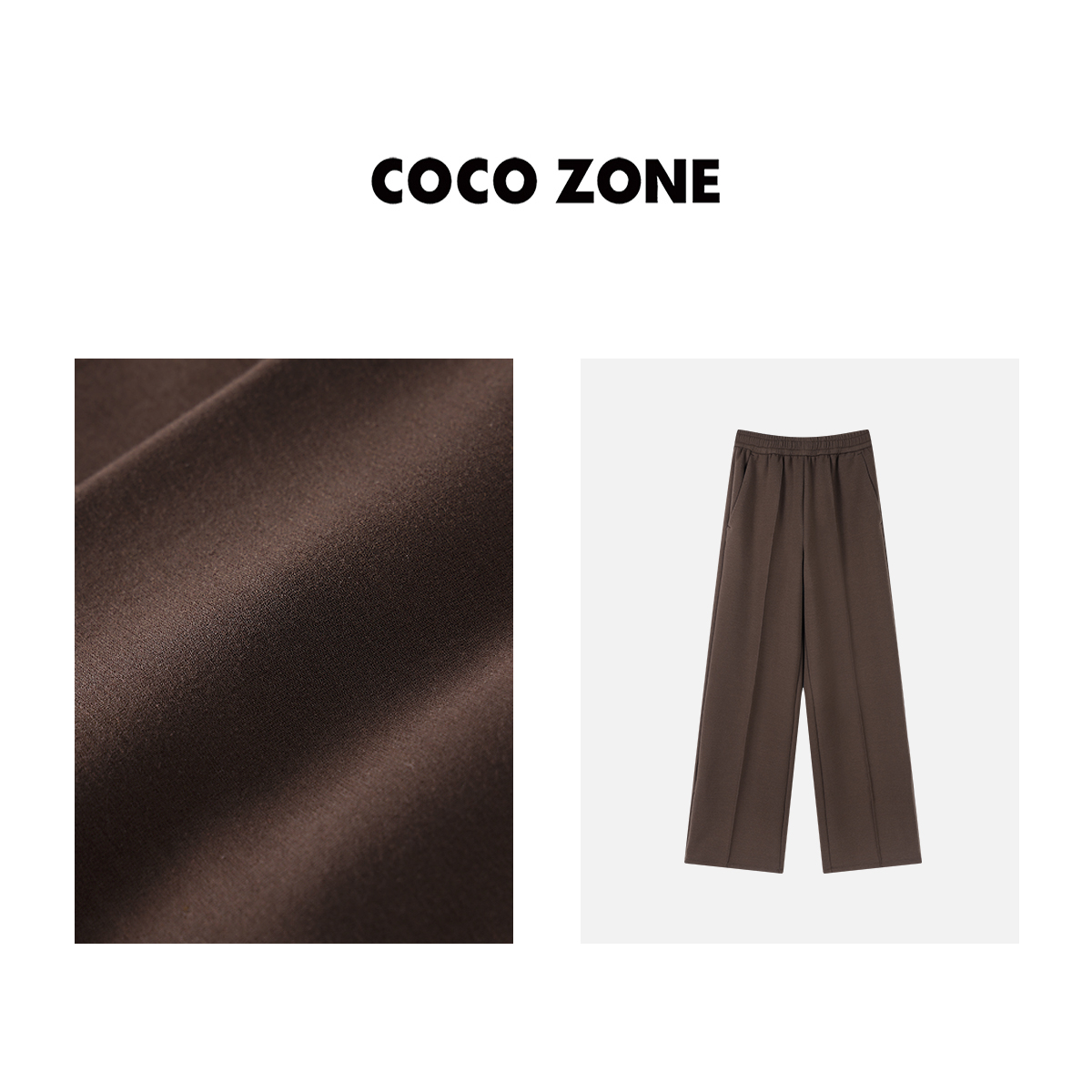 COCO ZONE“羊毛空气裤”美拉德松紧腰裤阔腿直筒裤23C19687