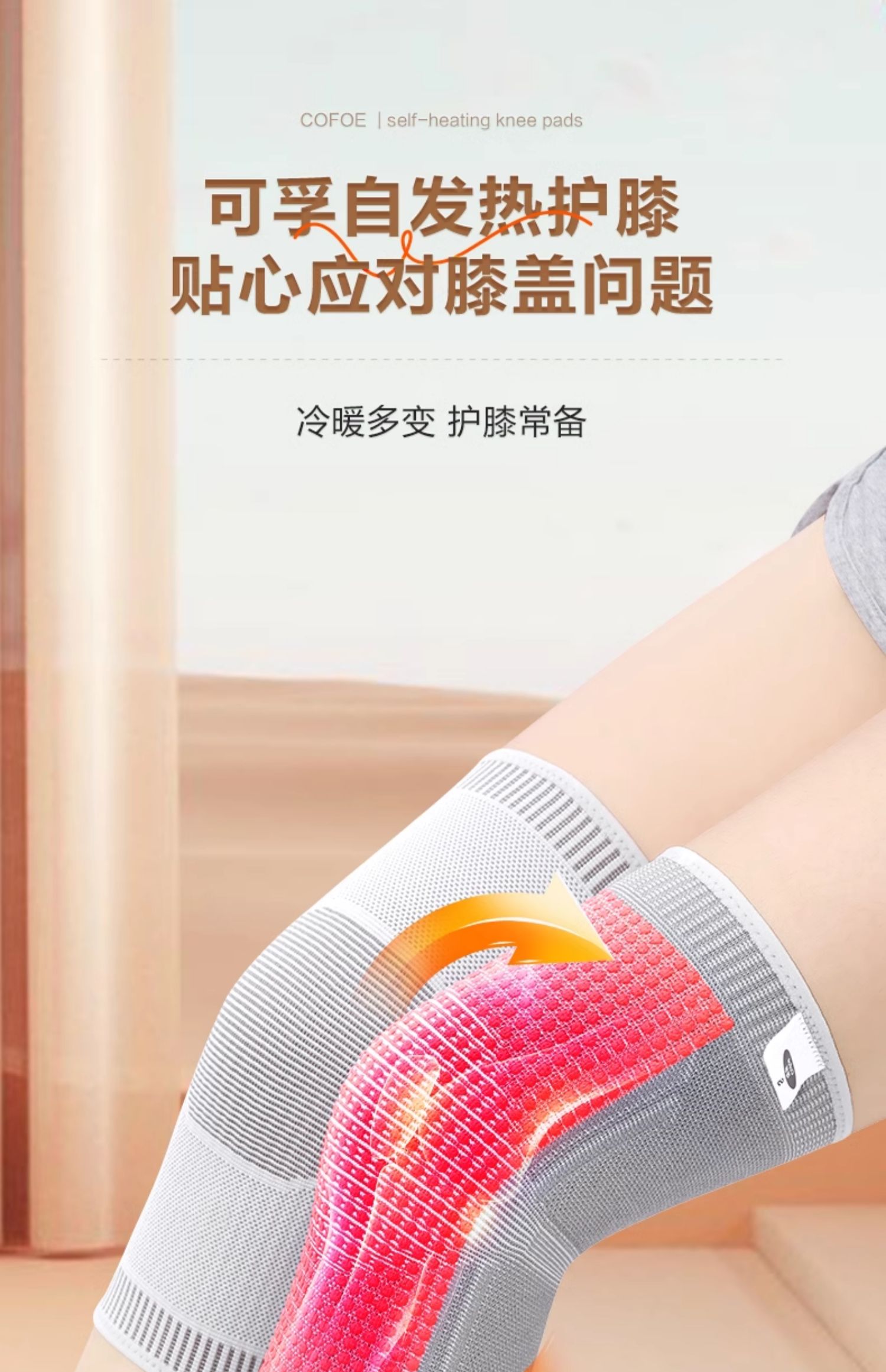 可孚自发热保暖护膝盖套男女士热敷关节秋冬运动防寒漆