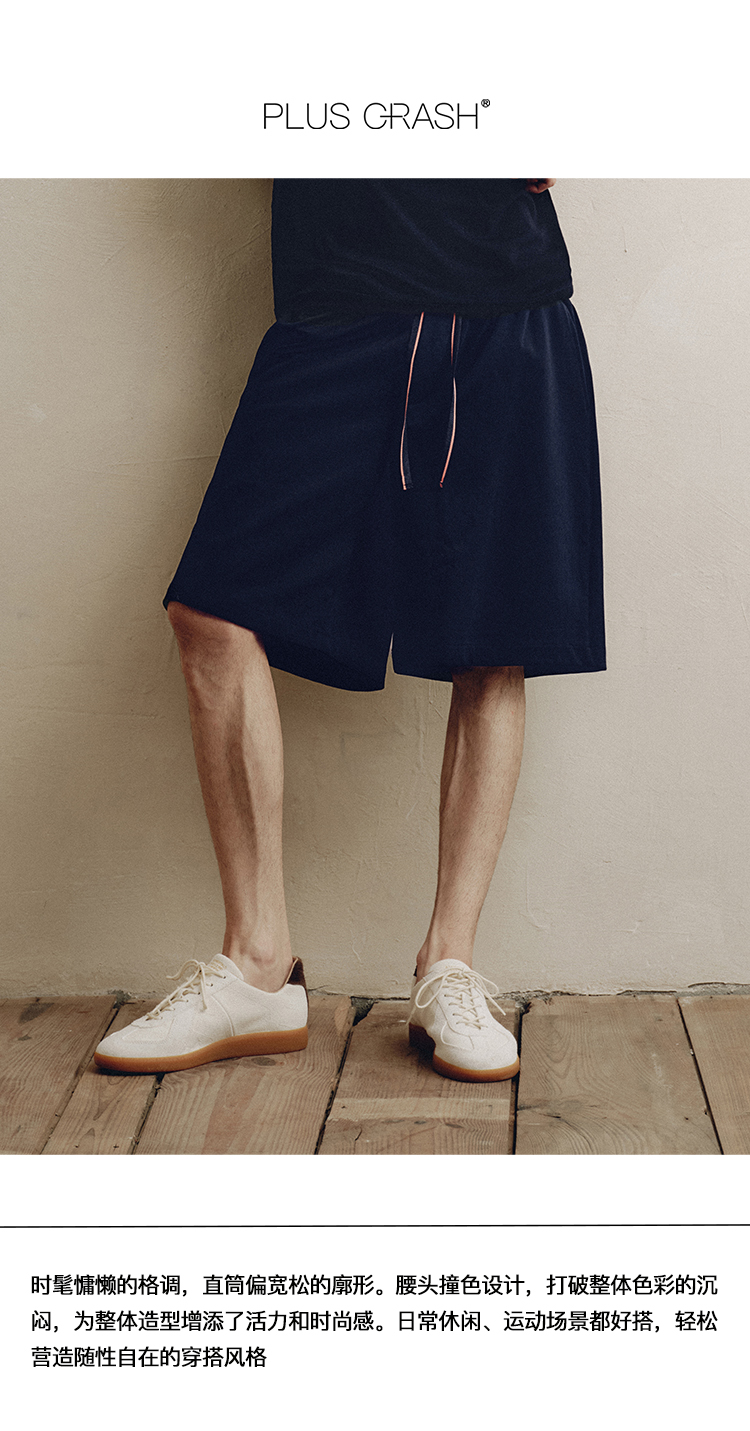 PLUS CRASH旅行者系列夏新抗皱透气短裤拼色抽绳基础百搭五分裤