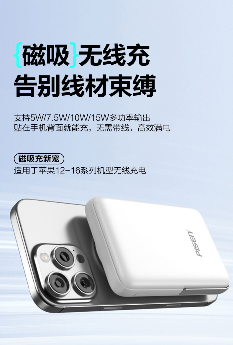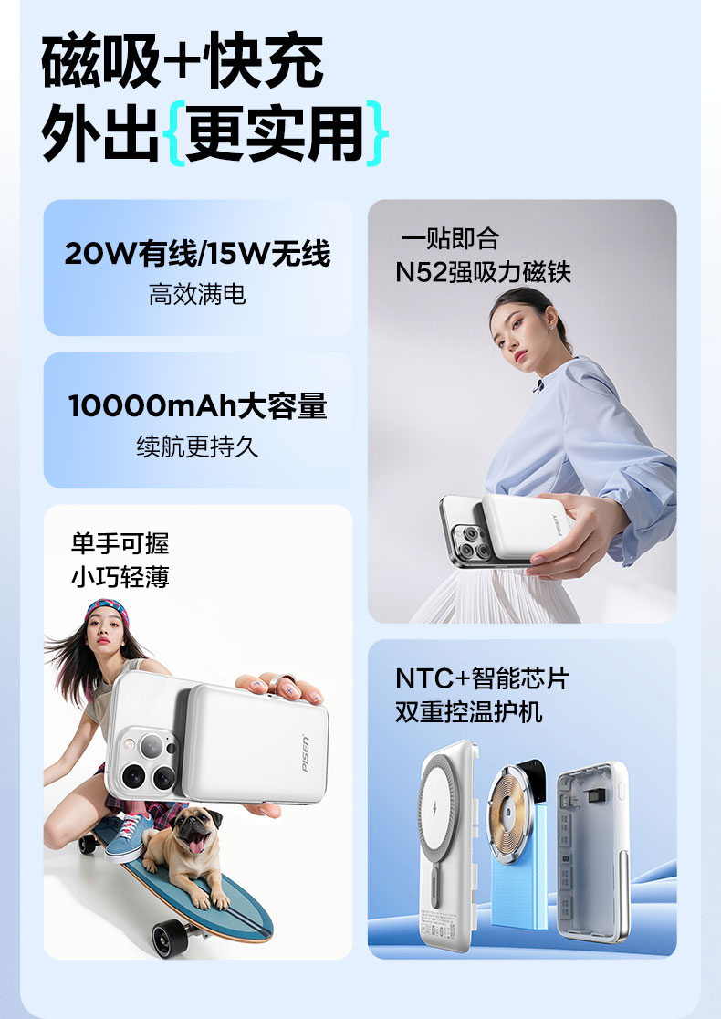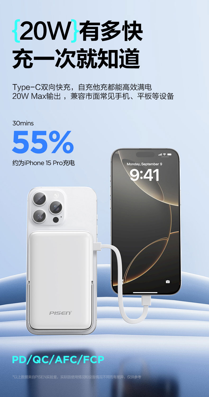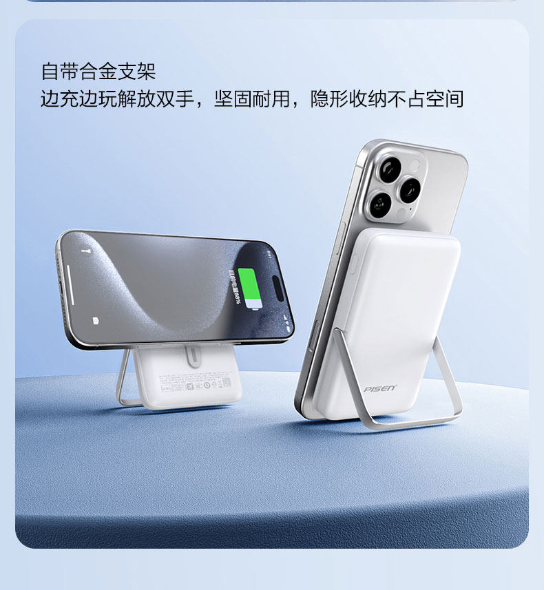 品胜 20W磁吸无线快充电宝10000毫安 带支架 支持20W磁吸充电移动电源