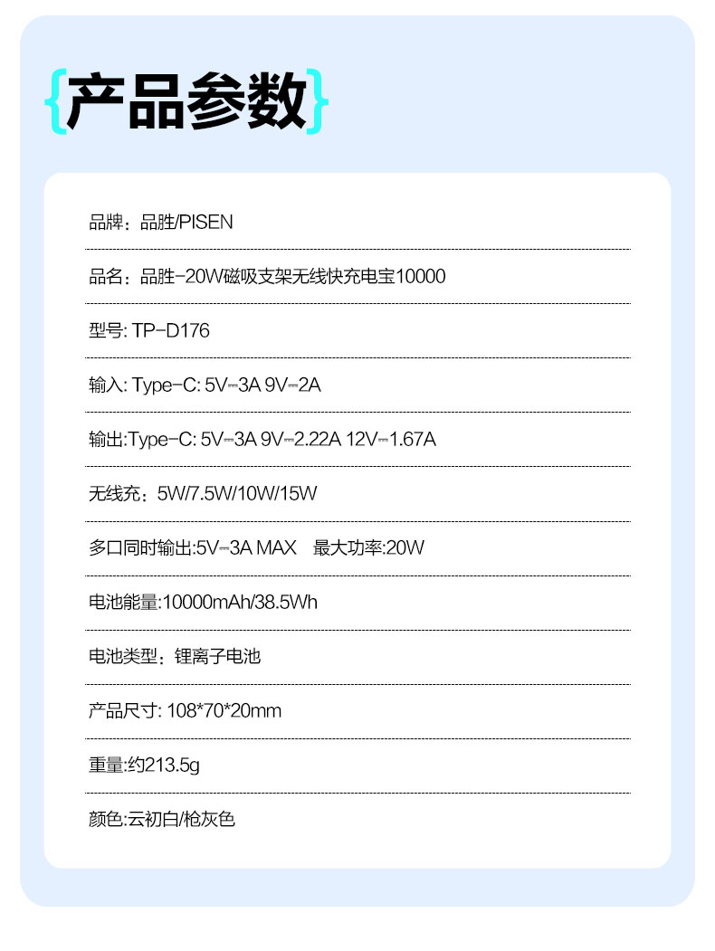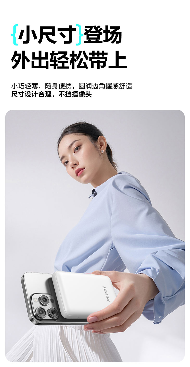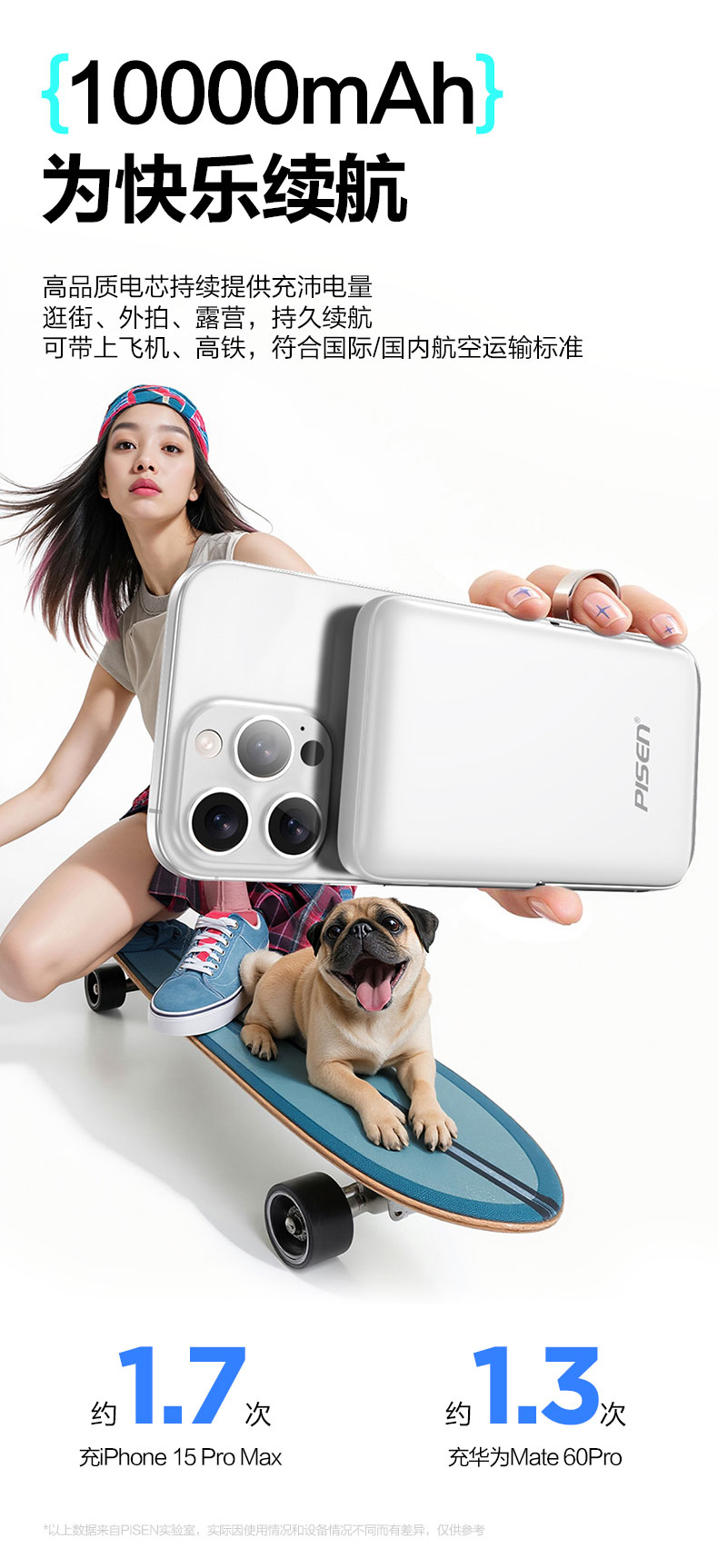 品胜 20W磁吸无线快充电宝10000毫安 带支架 支持20W磁吸充电移动电源