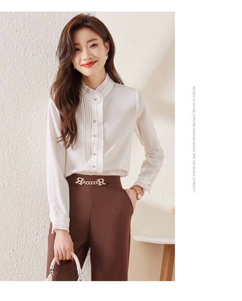 早春新款立领衬衣通勤时尚内搭衬衫女法式高级上衣
