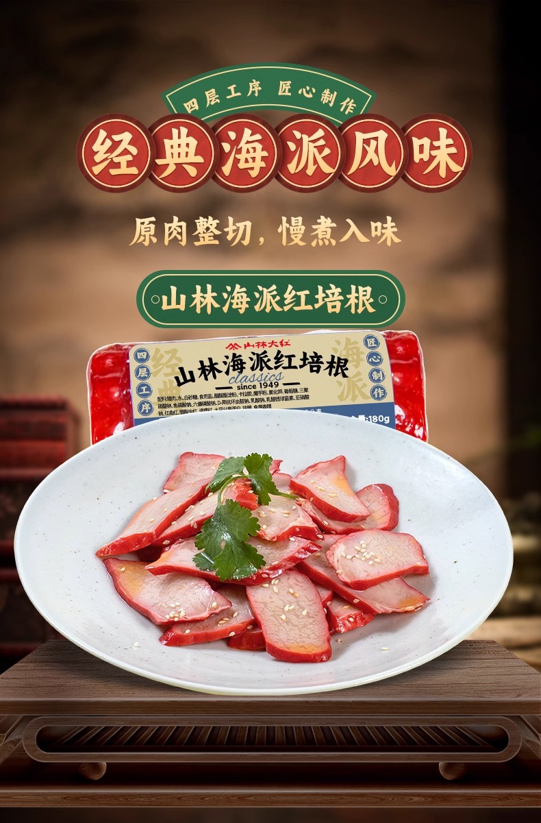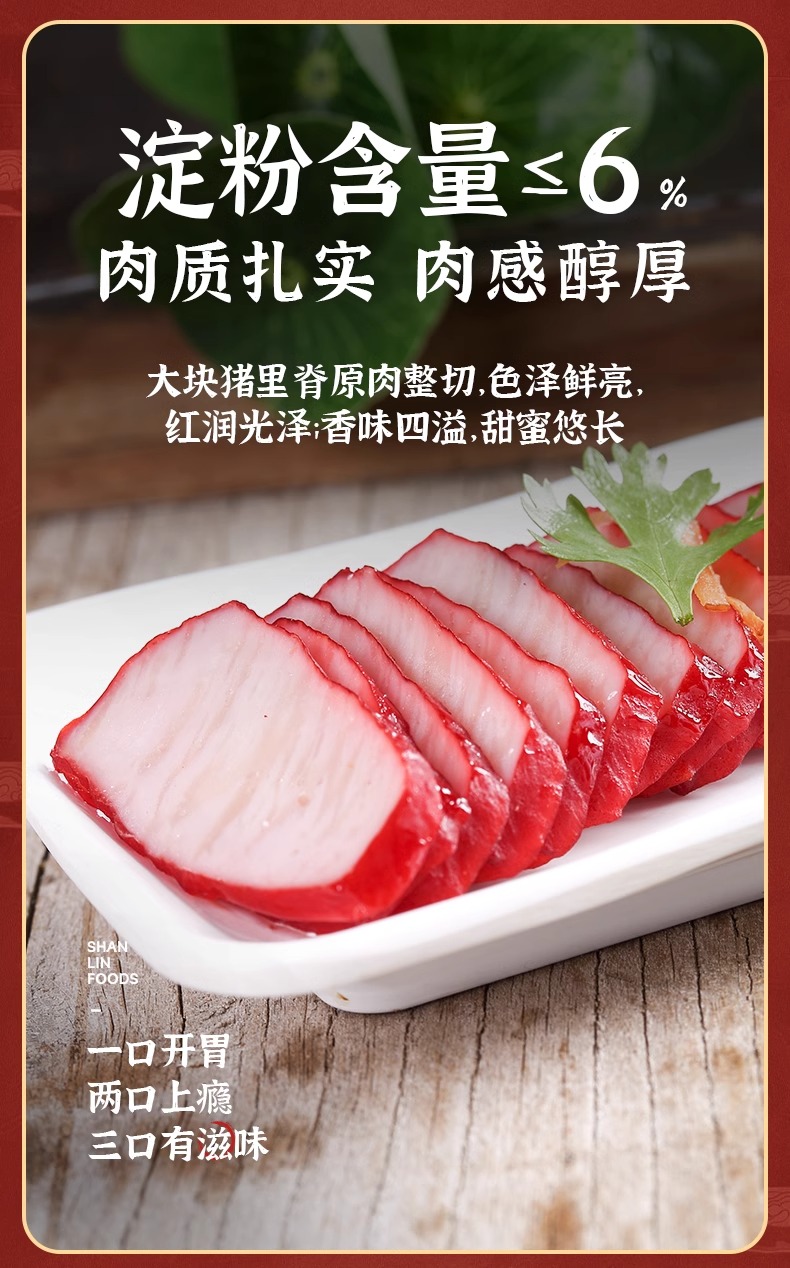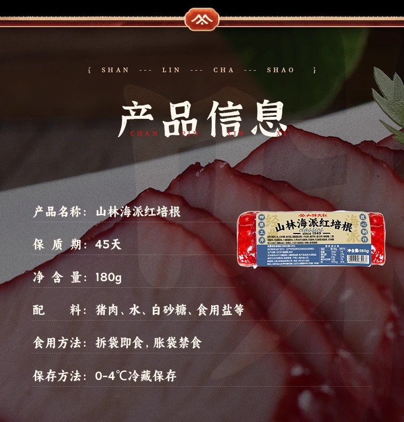 山林大红精选培根家用早餐手抓饼三明治烧烤食材专用预制菜 培根180g+叉烧200g