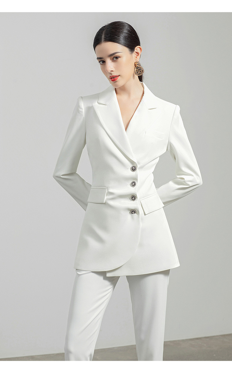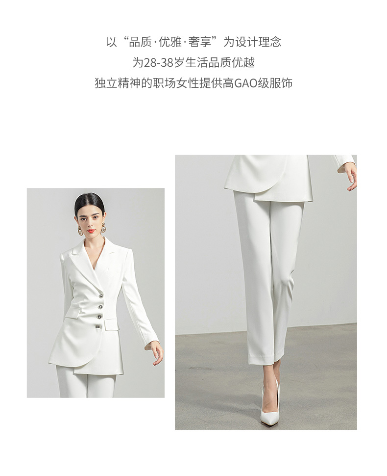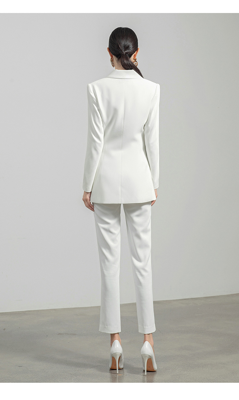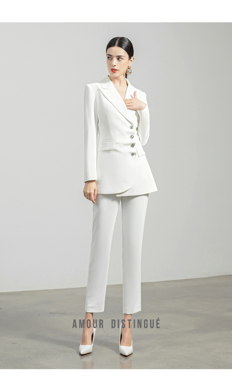 AD白色西装套装女秋冬两件套设计感褶皱西服外套通勤简约职业装