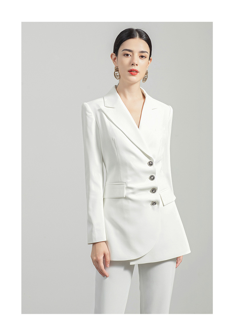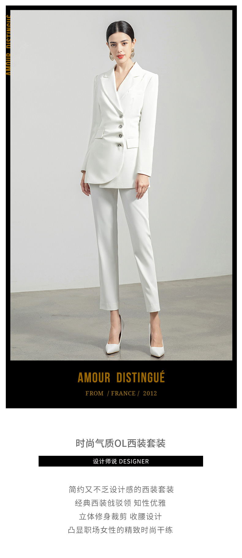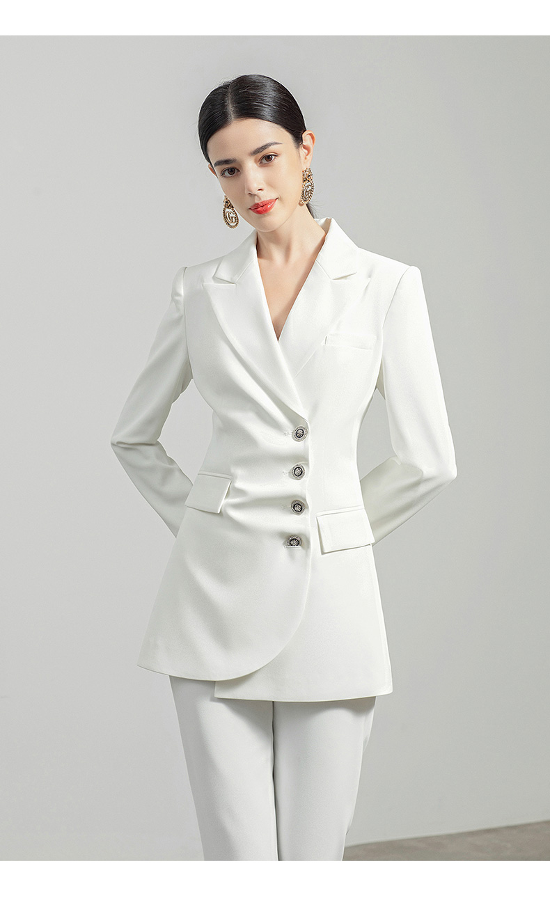 AD白色西装套装女秋冬两件套设计感褶皱西服外套通勤简约职业装