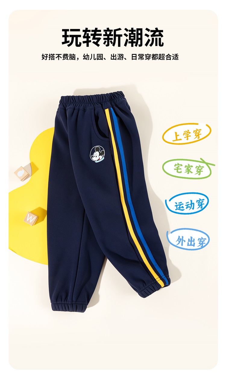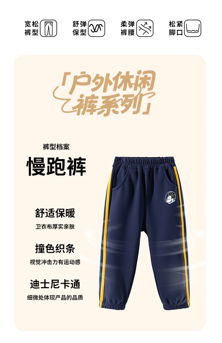 迪士尼春秋季卡通印花男童休闲织带卫裤中大童运动裤长裤儿童百搭束脚裤ZD3EK035