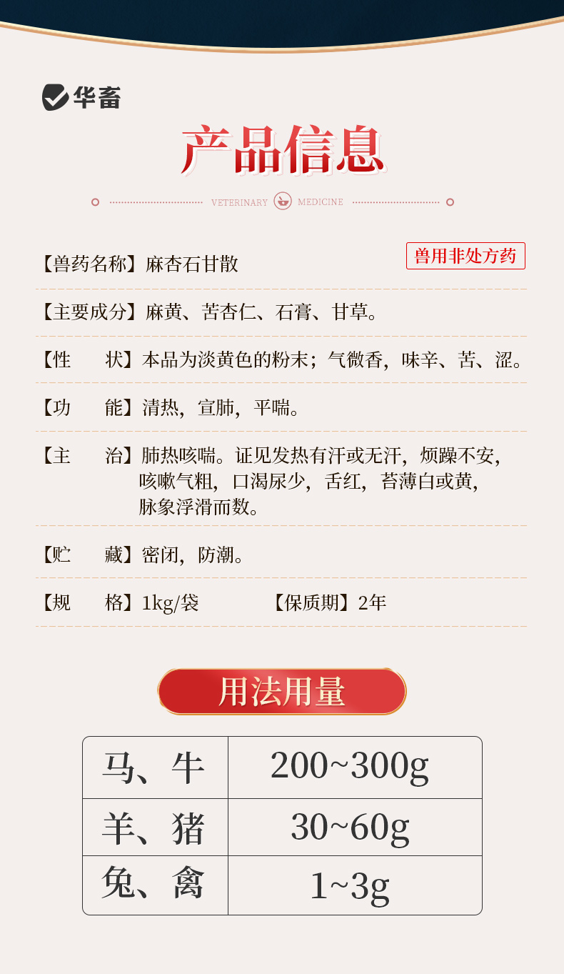 华畜麻杏石甘散1kg 肺炎咳喘 清肺止咳 禽畜通用呼吸道药