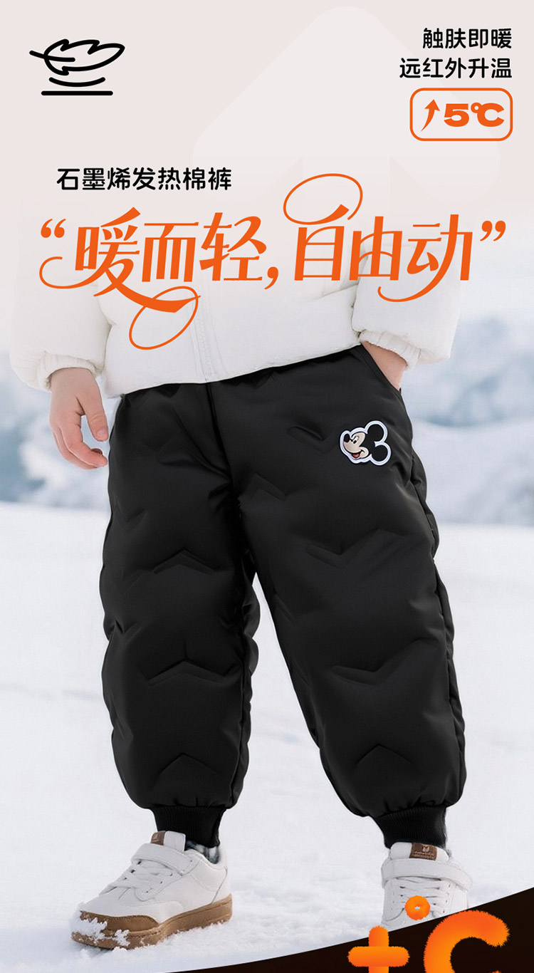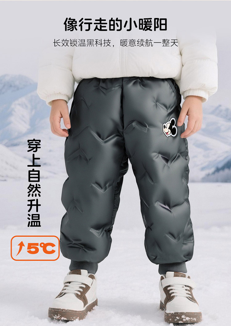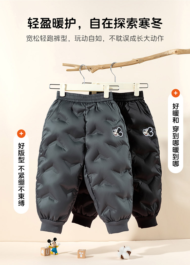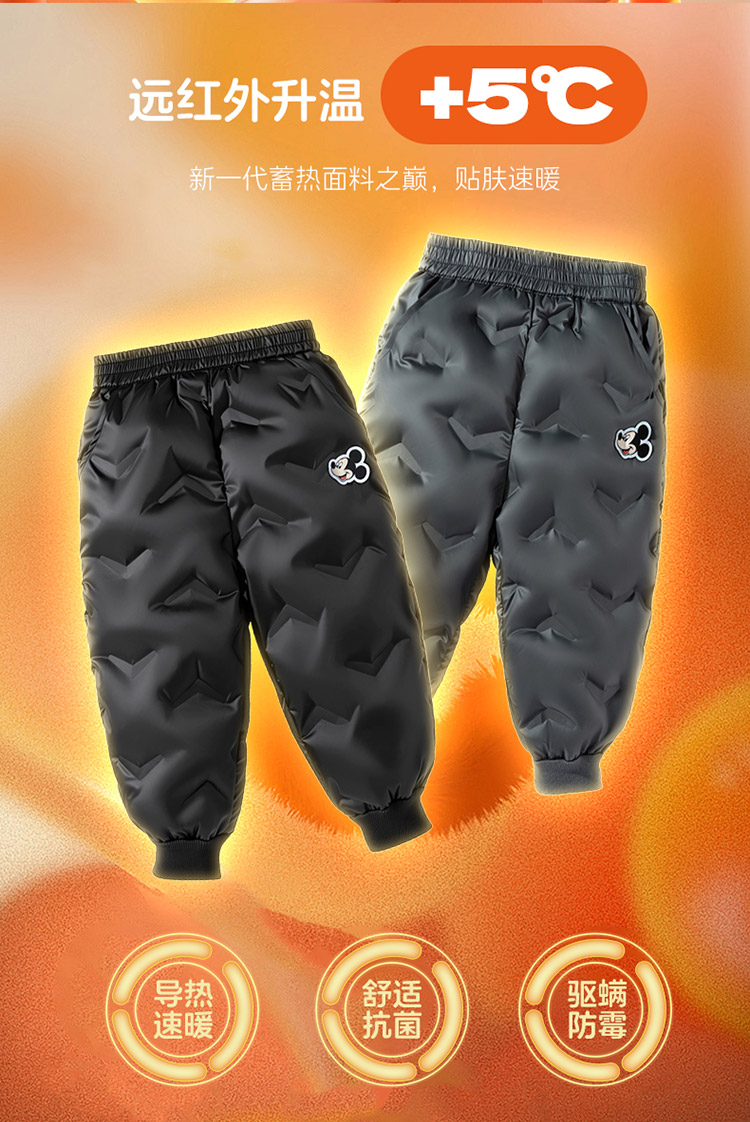 迪士尼25秋冬新款男童防风保暖裤中大童休闲软壳棉裤ZD4EK008