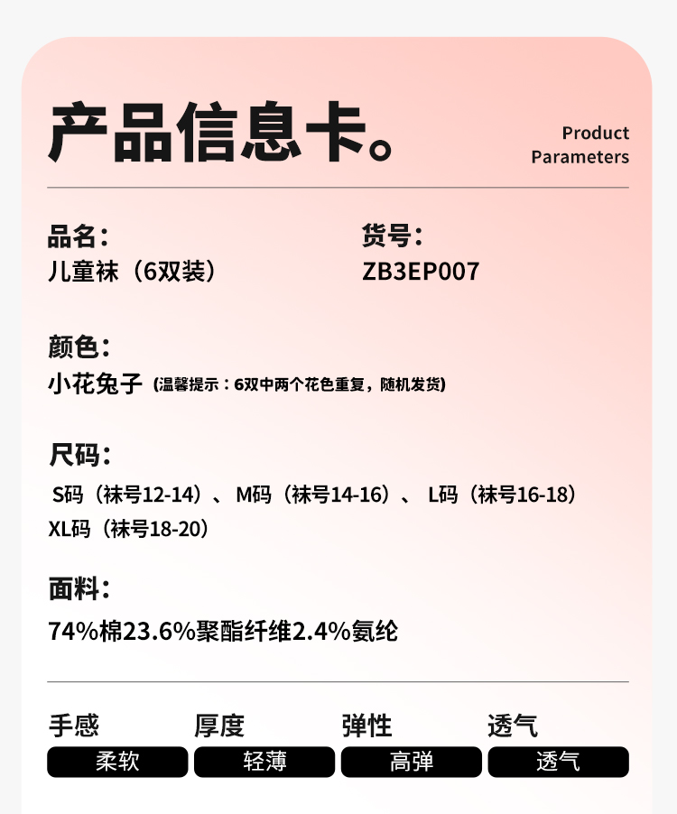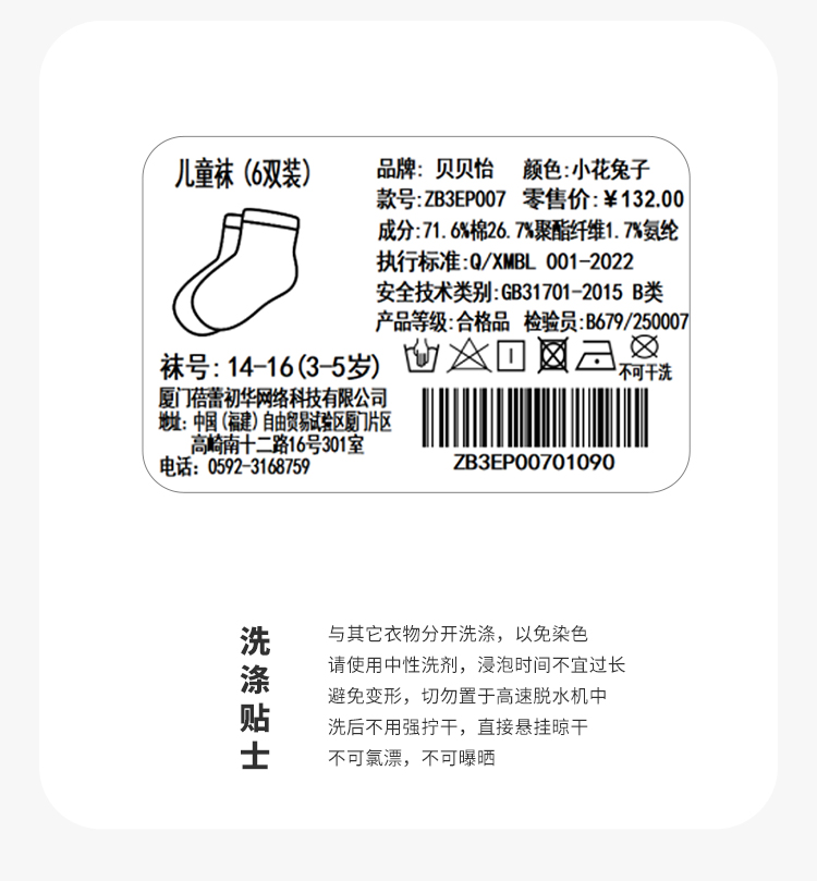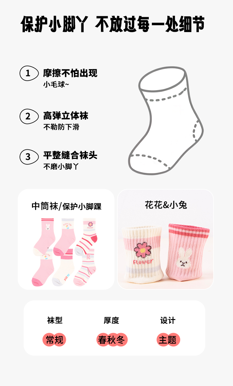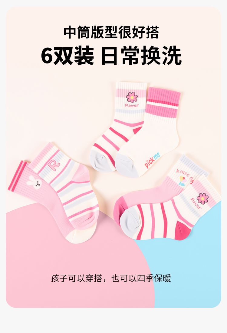贝贝怡女童春秋儿童袜(6双装)ZB3EP007