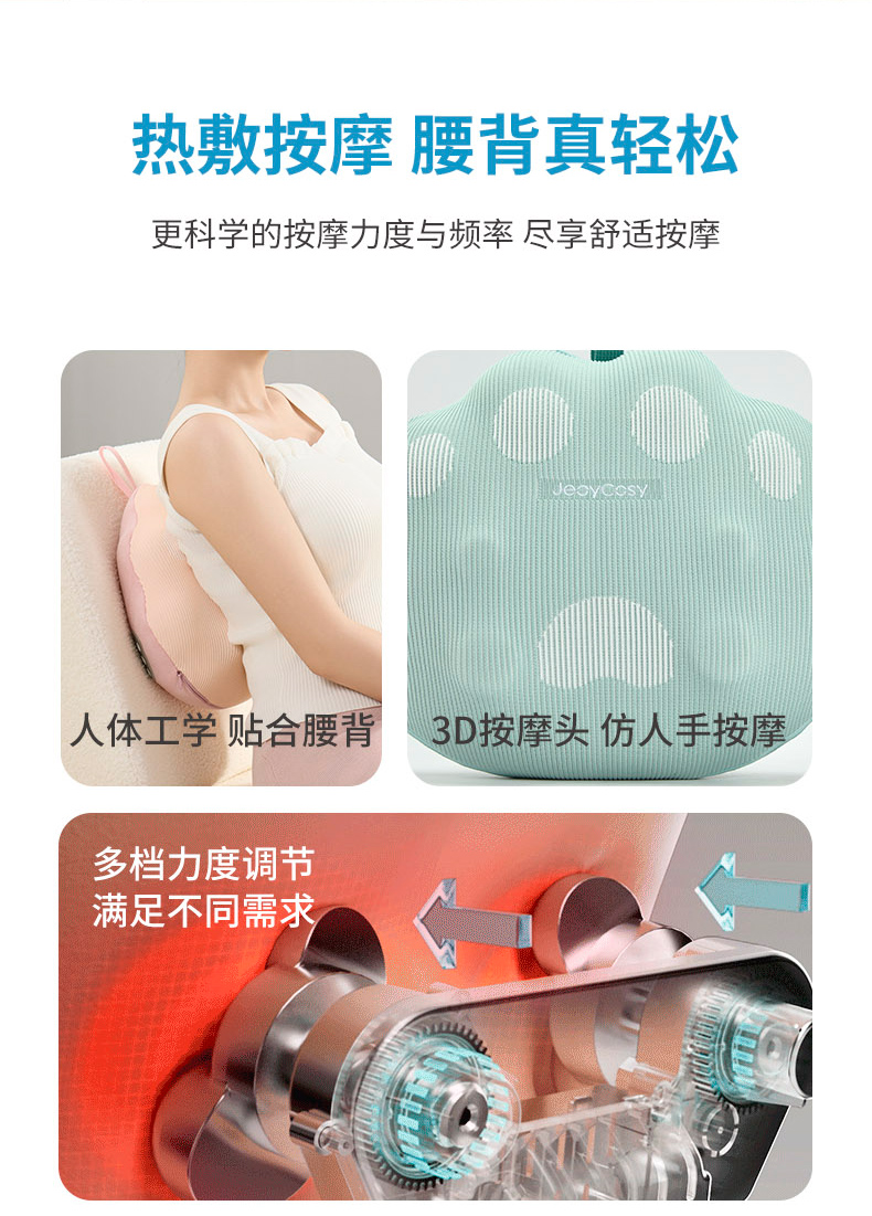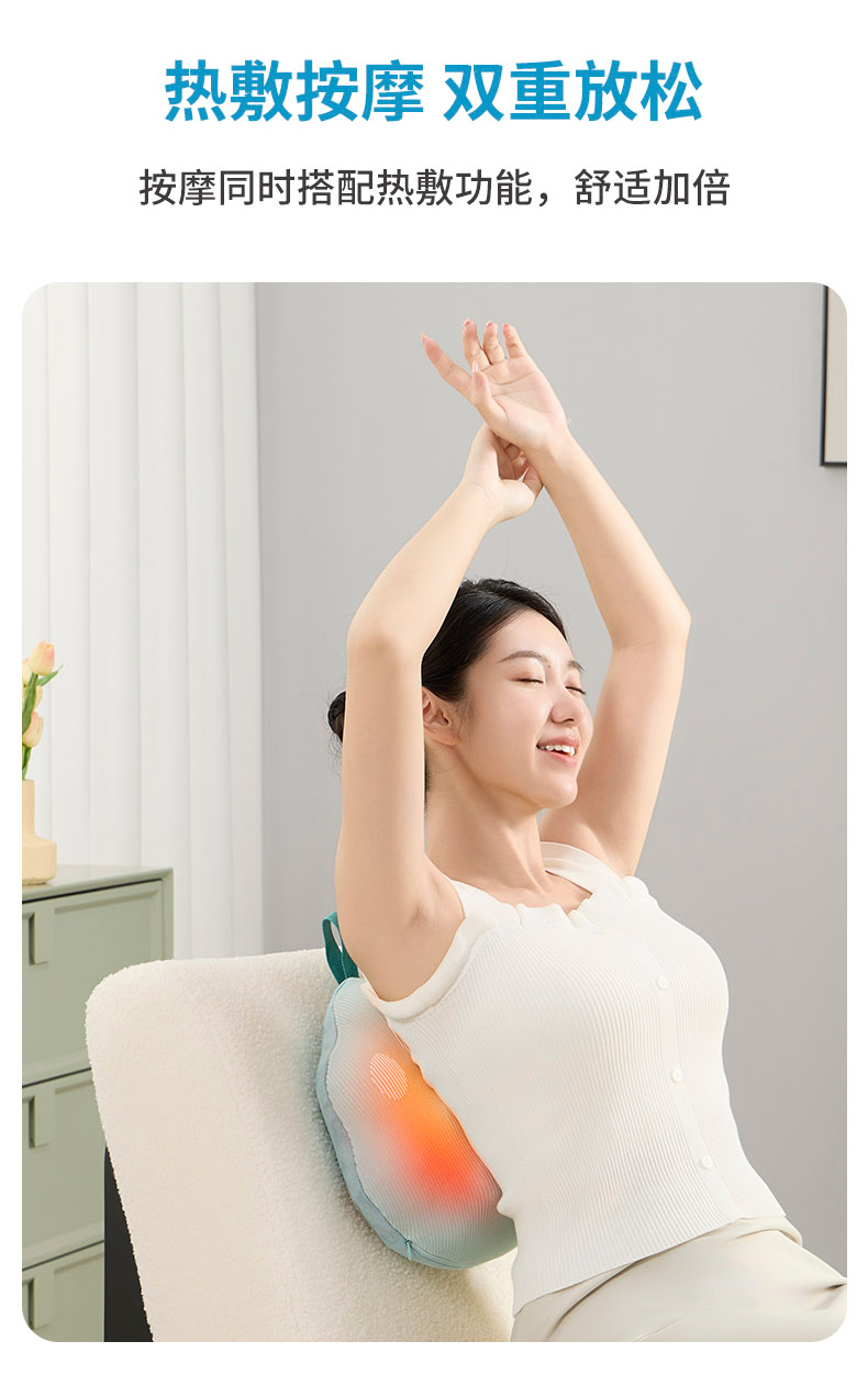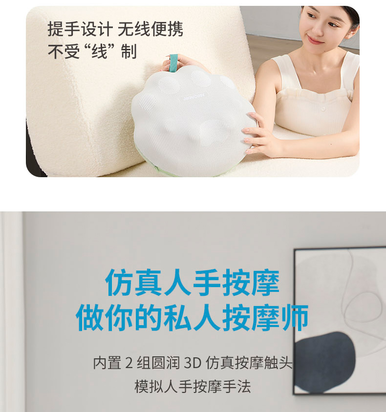 “金砖国际医疗委员会官方指定用品”践程按摩靠枕 R3小福宝 仿人手正反揉捏 多档可调 无线便携