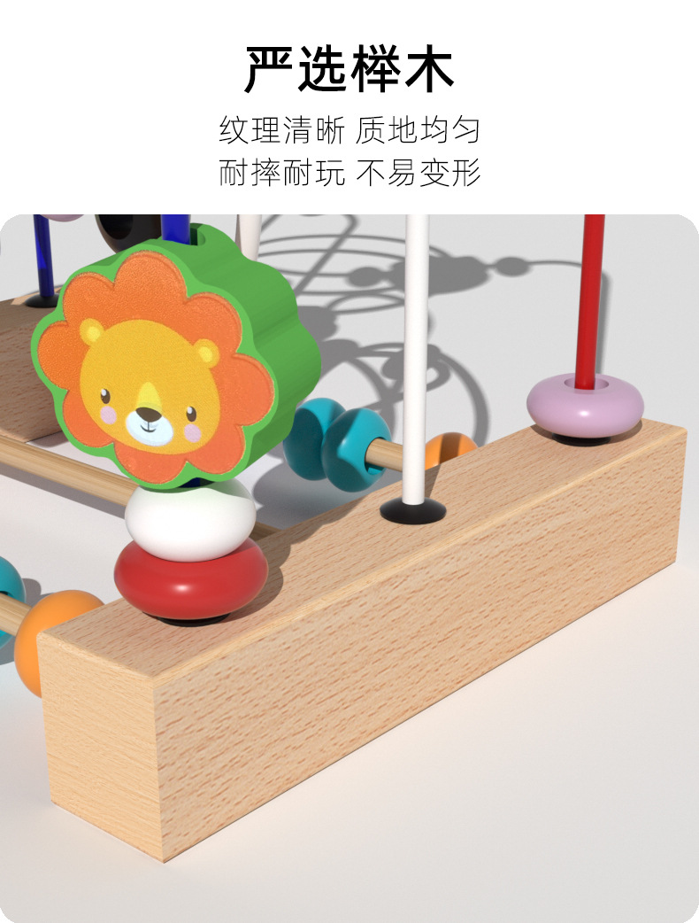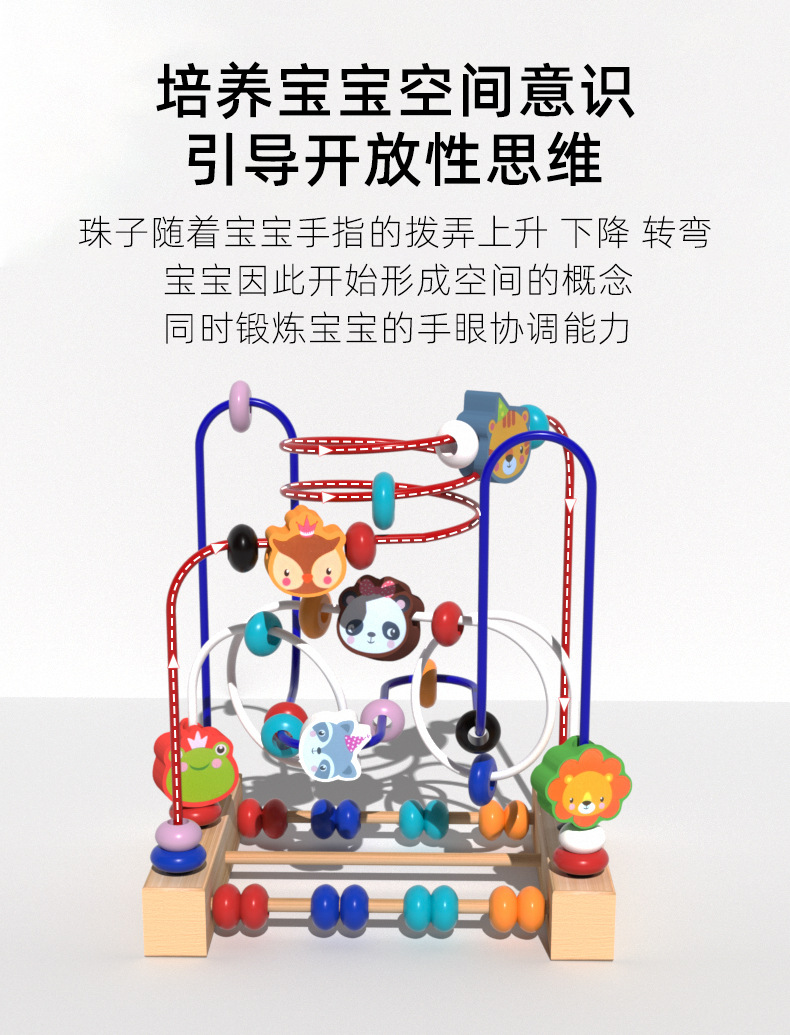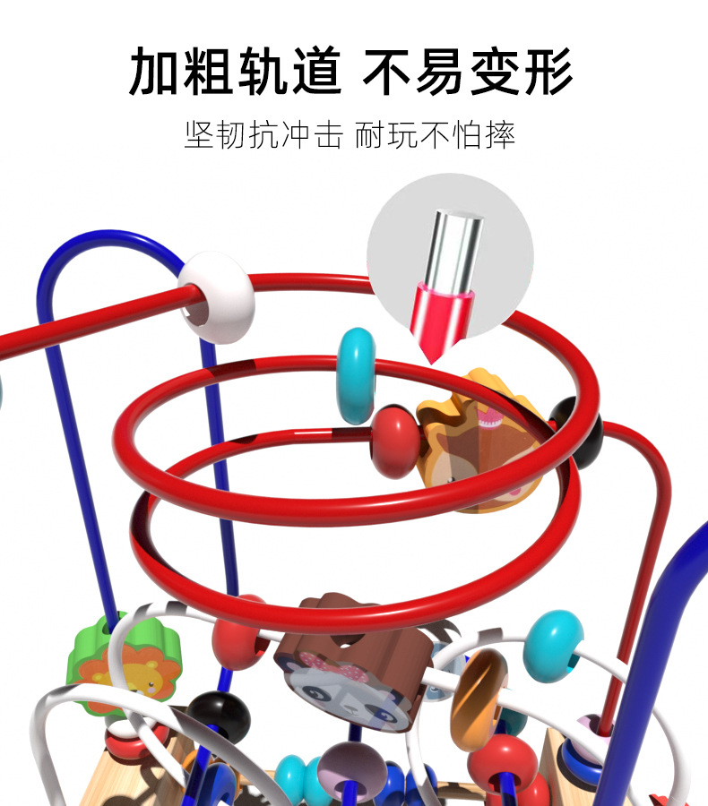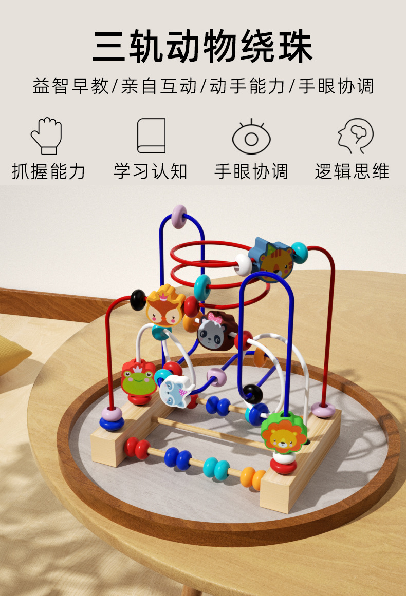 【培养宝宝空间意识&逻辑思维】多功能动物绕珠婴幼儿木制三轨串珠玩具手眼协调训练早教益智积木