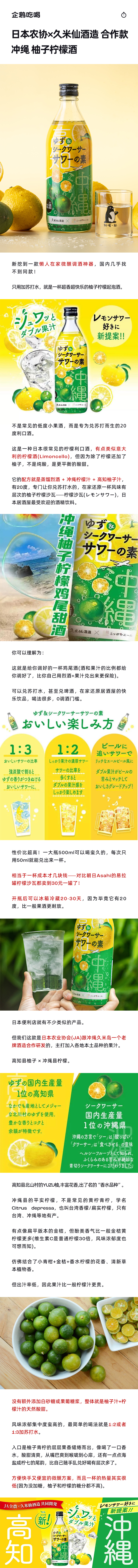 企鹅市集|日本农协X久米仙酒造 合作款 冲绳 柚子柠檬果酒 20度利口酒 配料表干净柠檬酒