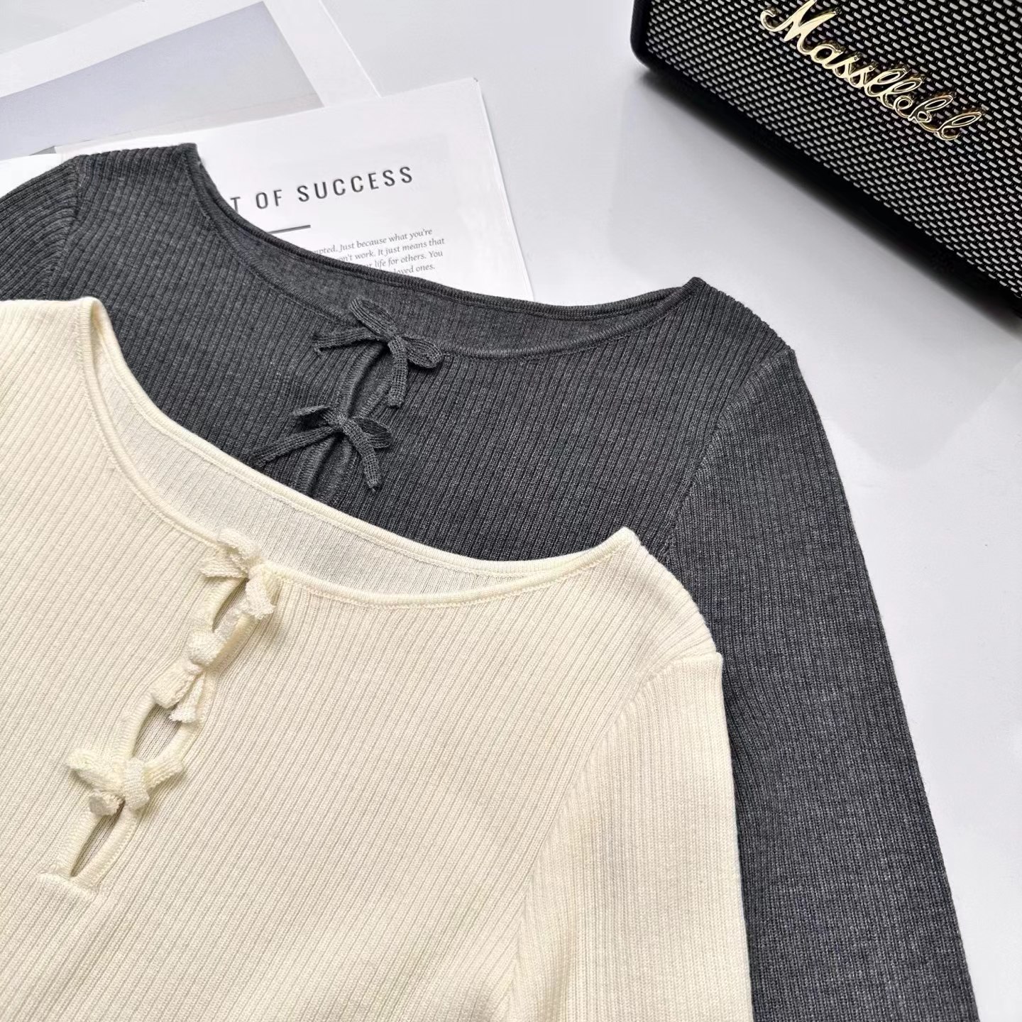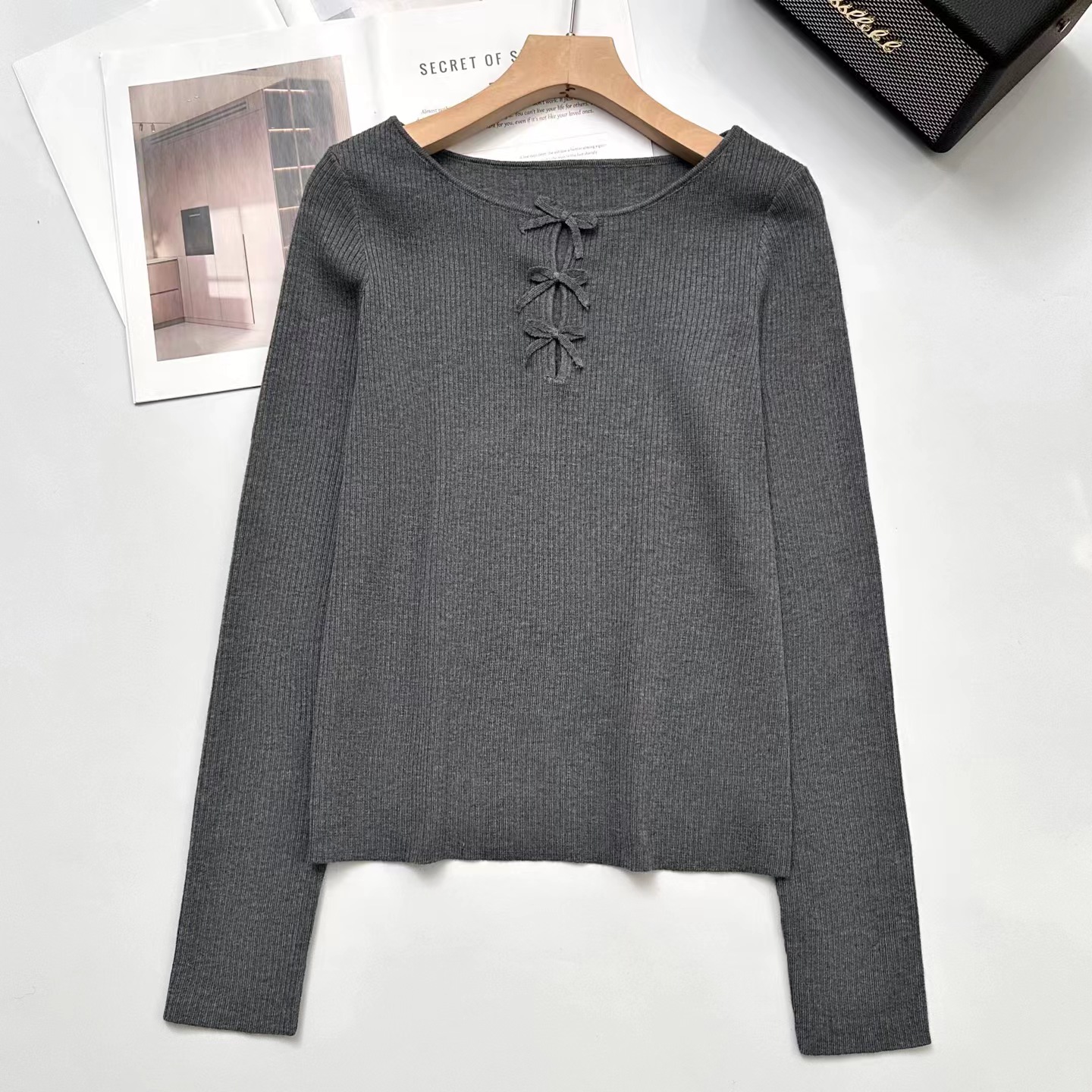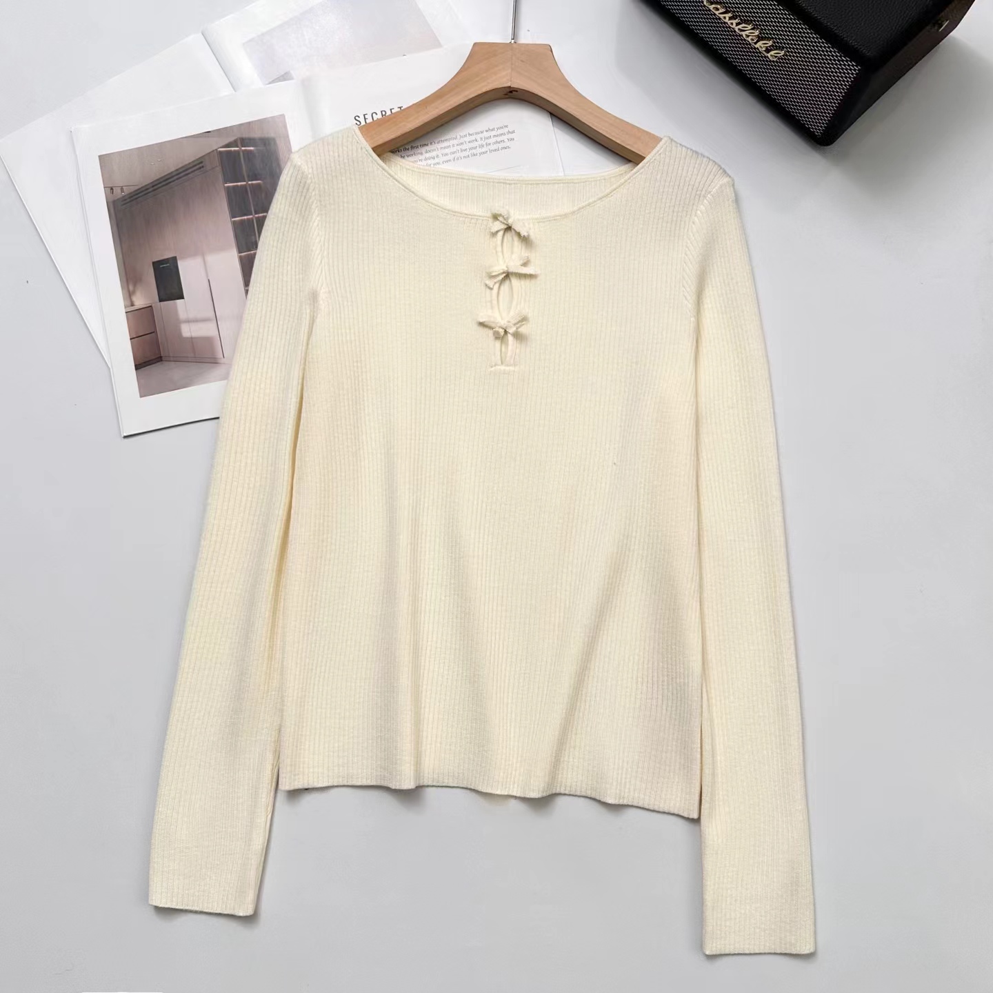 这件针织很措中我的审美~一字小船领,显得肩旁平平的直直的,有点像做过瑜伽拉样舒展,胸前 三个蝴蝶结搭配三个镂空,适当的露肤度有点小心ji,灵动的蝴蝶节精 致又俏皮!弹力修身版型,采用高弹力坑条织法360°贴合身体曲线又留有舒适余量,藏肉于无形,勾勒曼妙身形,显得人身形特别修长。搭配上基本的牛仔裤,半裙就足够好看,深秋或初冬搭配大衣外套,露出这个法式的蝴蝶结也很别致又有层次感!面料采用高支数羊毛纱线,经过坑条工艺编织而成,竖向坑条肌理纹理清晰,条干均匀,平整紧致,有出色的弹力,上身穿着无紧绷束缚感,修身显瘦不在话下,不扎肤哦~公主肌可以放心入手~
