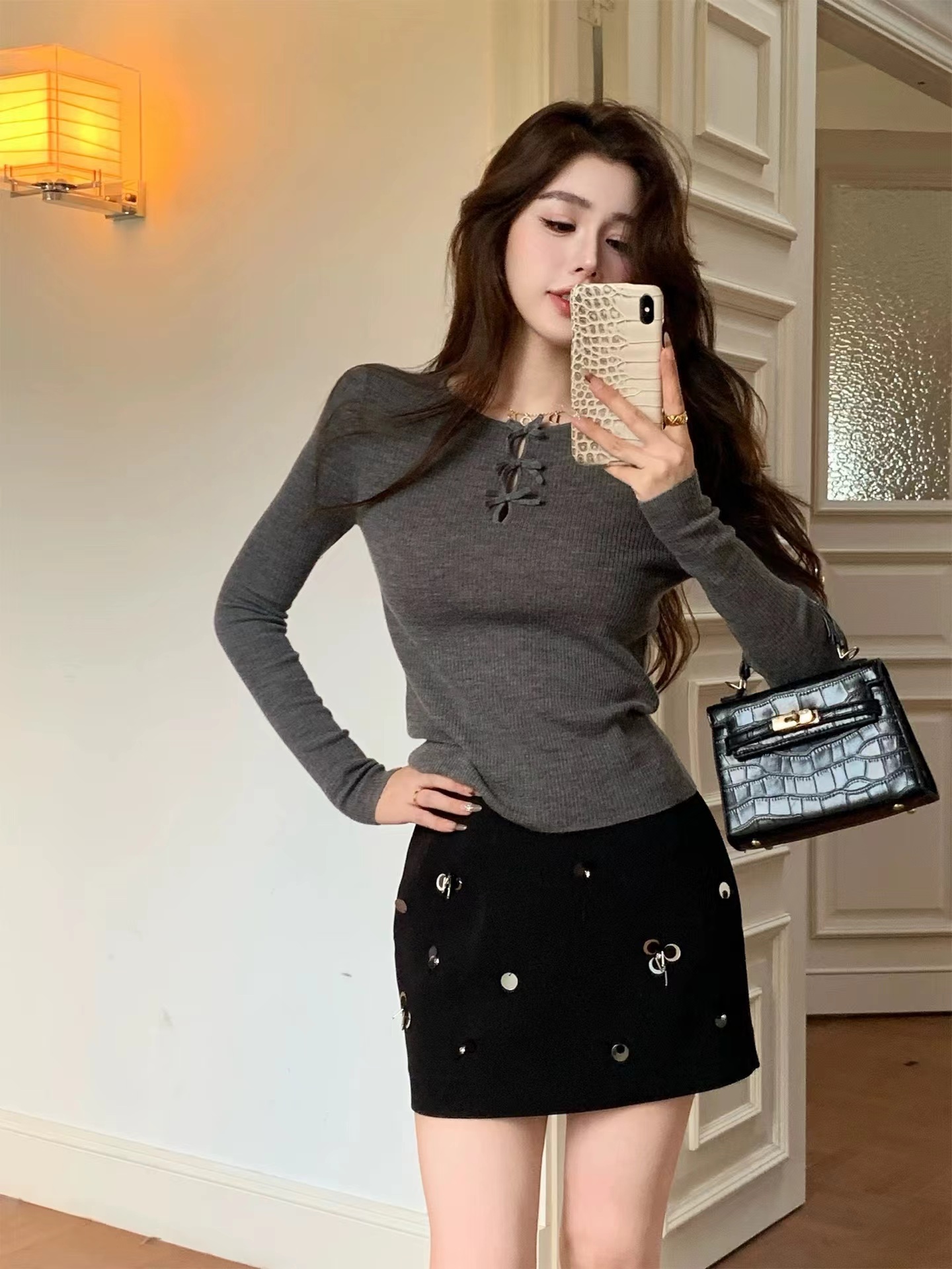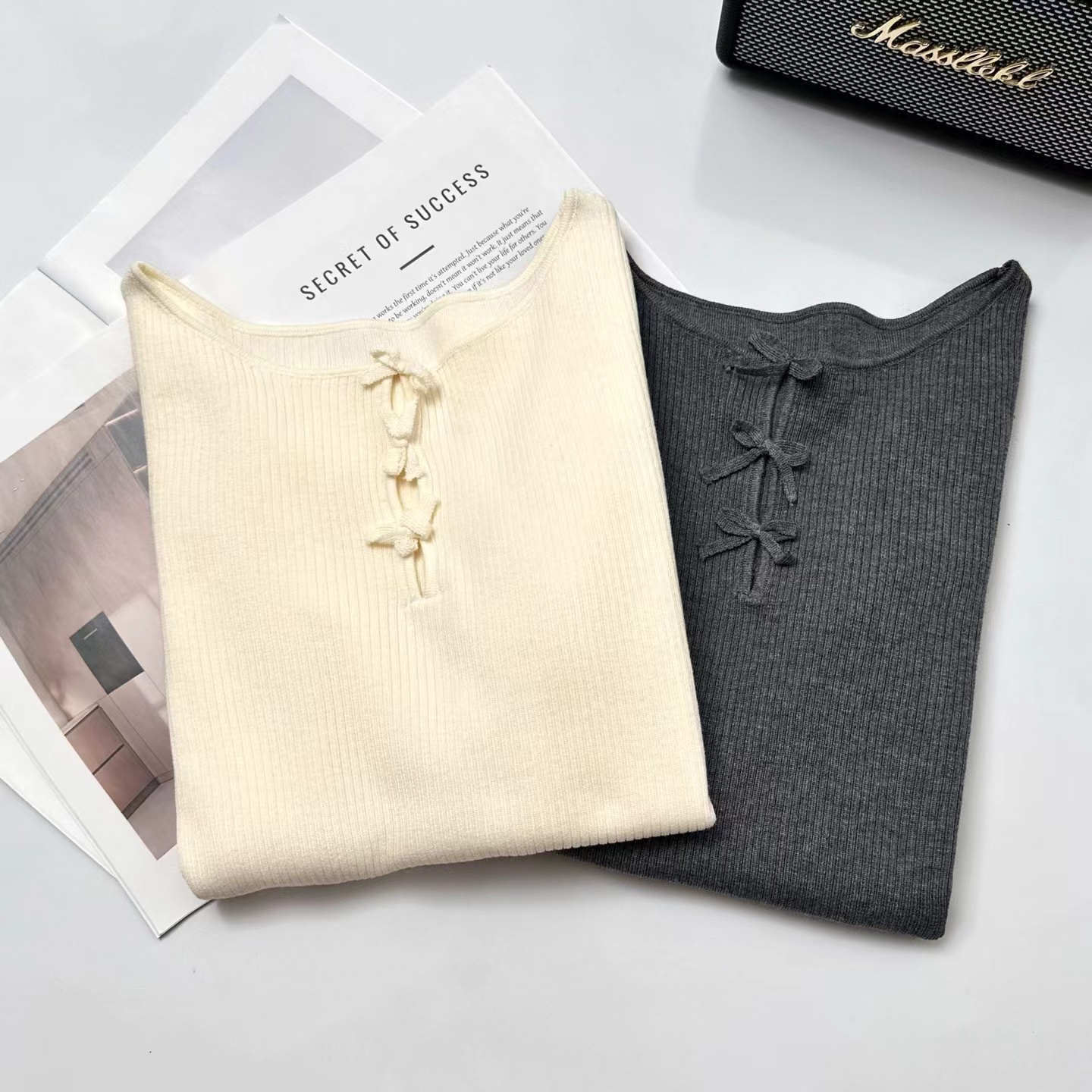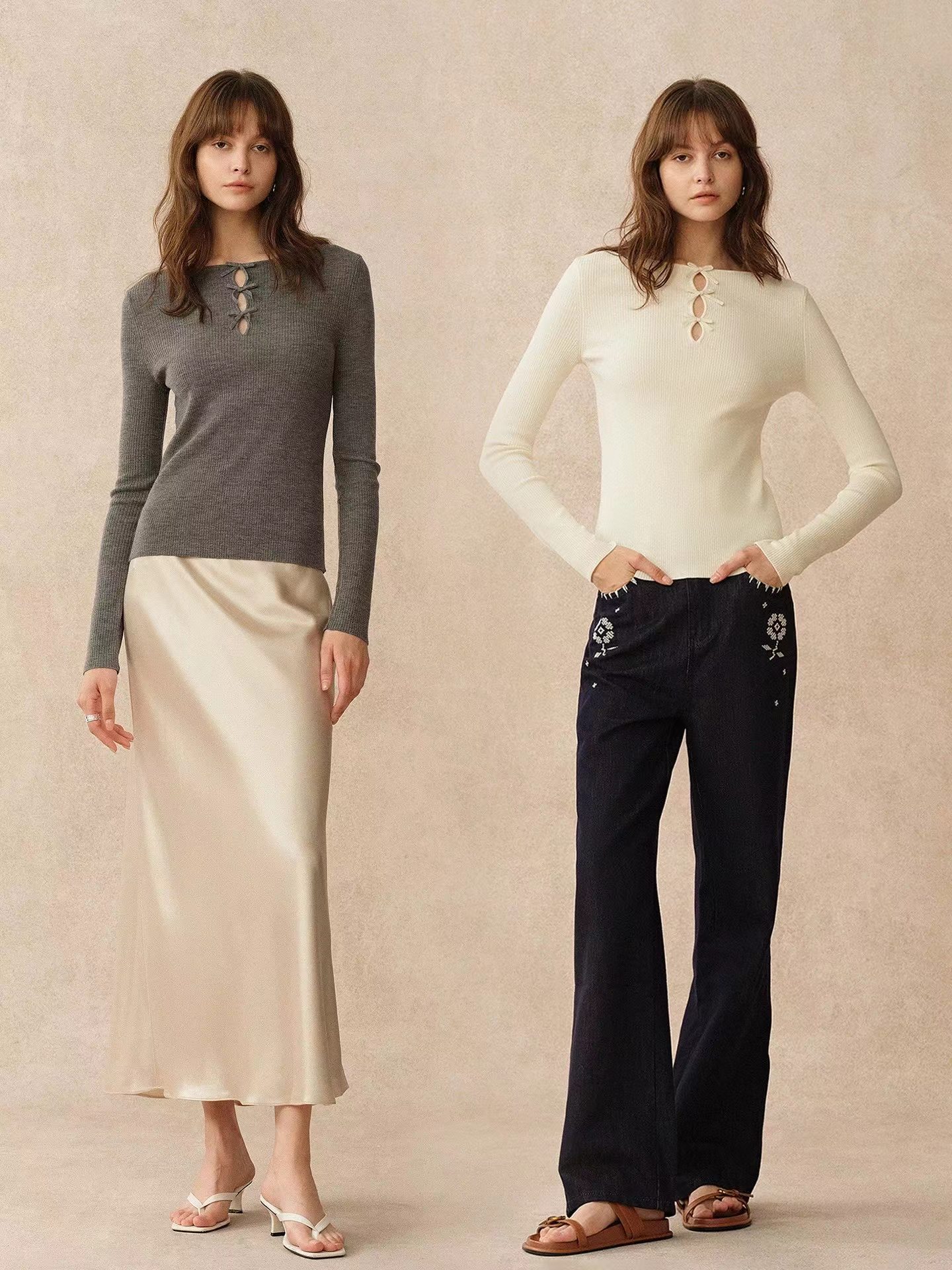 这件针织很措中我的审美~一字小船领,显得肩旁平平的直直的,有点像做过瑜伽拉样舒展,胸前 三个蝴蝶结搭配三个镂空,适当的露肤度有点小心ji,灵动的蝴蝶节精 致又俏皮!弹力修身版型,采用高弹力坑条织法360°贴合身体曲线又留有舒适余量,藏肉于无形,勾勒曼妙身形,显得人身形特别修长。搭配上基本的牛仔裤,半裙就足够好看,深秋或初冬搭配大衣外套,露出这个法式的蝴蝶结也很别致又有层次感!面料采用高支数羊毛纱线,经过坑条工艺编织而成,竖向坑条肌理纹理清晰,条干均匀,平整紧致,有出色的弹力,上身穿着无紧绷束缚感,修身显瘦不在话下,不扎肤哦~公主肌可以放心入手~