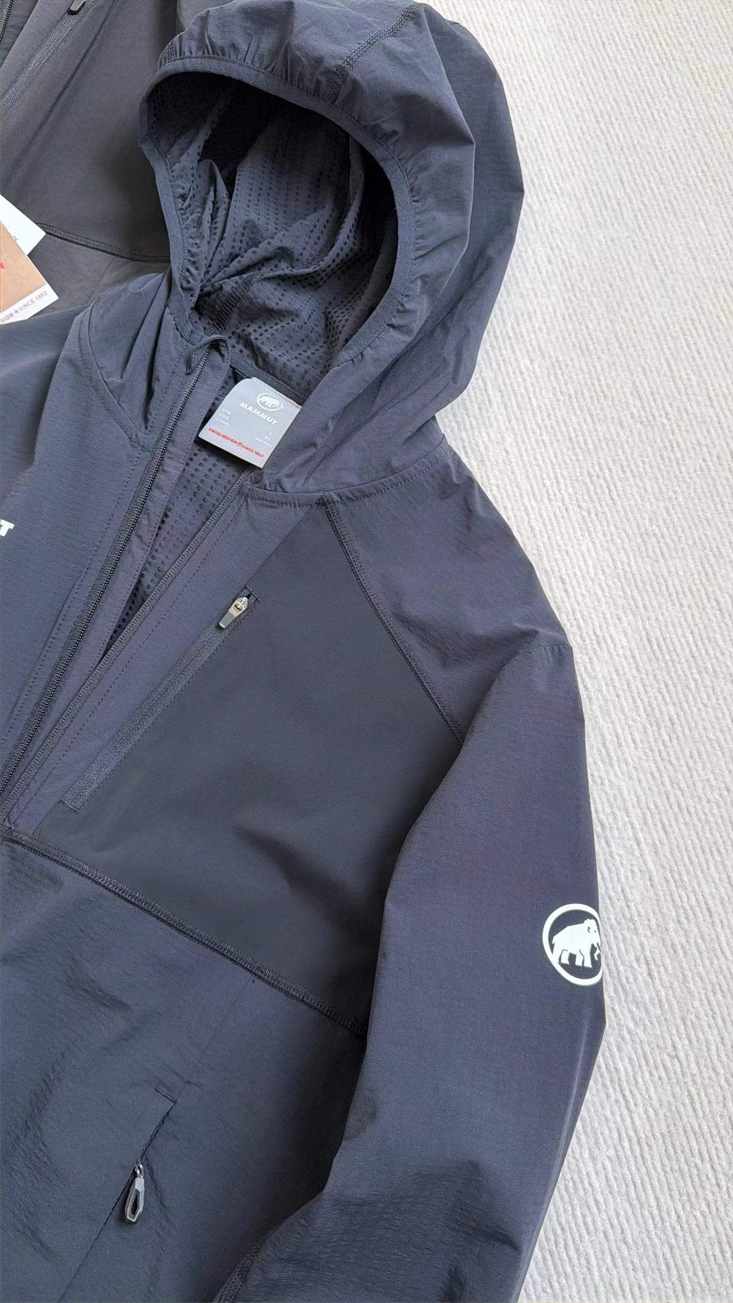 轻量单层弹力外套 男女同款 软壳连帽夹克 基础夹克 轻便中间层高透气速干夹克!面料上含有暗条纹工艺!衣服有垂感 防泼水 手感细腻 无畏山野 清爽征途 轻量中间层夹克,面料轻微有弹力 抗风锁温 持续清新 以舒适灵动姿态 ?为您探索,保驾护航!【这是一款锦纶氨纶面料的 弹性夹克 可以搭配马甲 羽绒服 冲锋衣 作为中间层 面料透气 可以快速调节运动中的汗水 ?使穿着者长期保持干燥!可单穿 ?可搭配 ?轻质 弹性伸展 ?整体轻量 足够保暖 ?提升舒适度 ?探索无拘束 !】总而言之一句话 这款连帽软壳外套 款式有设计!三色可选~做工也同样复杂!春天能有这款外套真的会让你穿着率很高!因为它非常百搭!拉链外套穿着场合非常多!男女同款!你值得拥有!