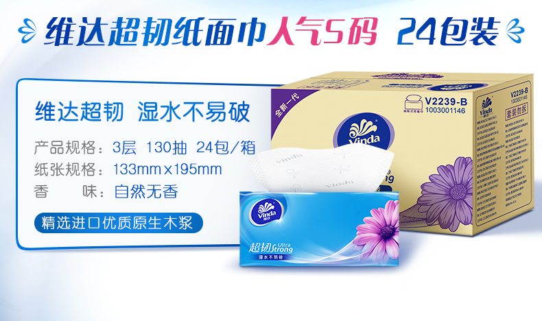 维达抽纸餐巾纸整箱批24包家庭装130抽实惠装大包卫生纸家用纸巾