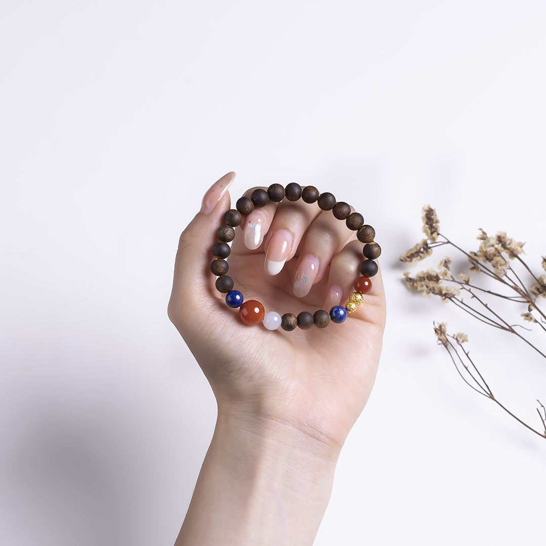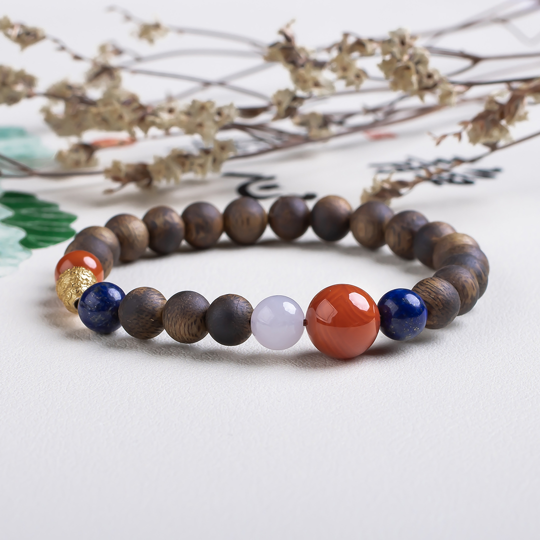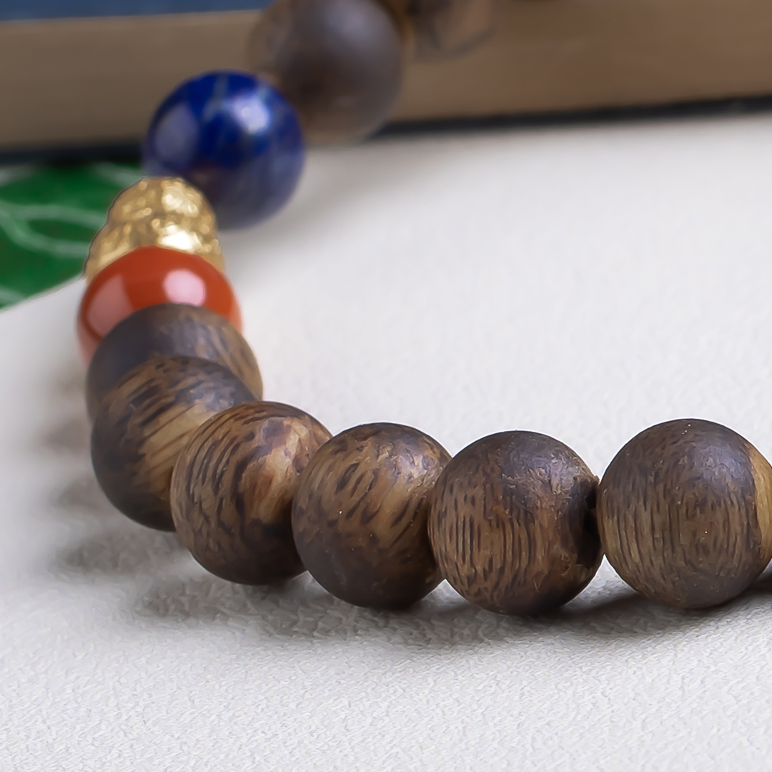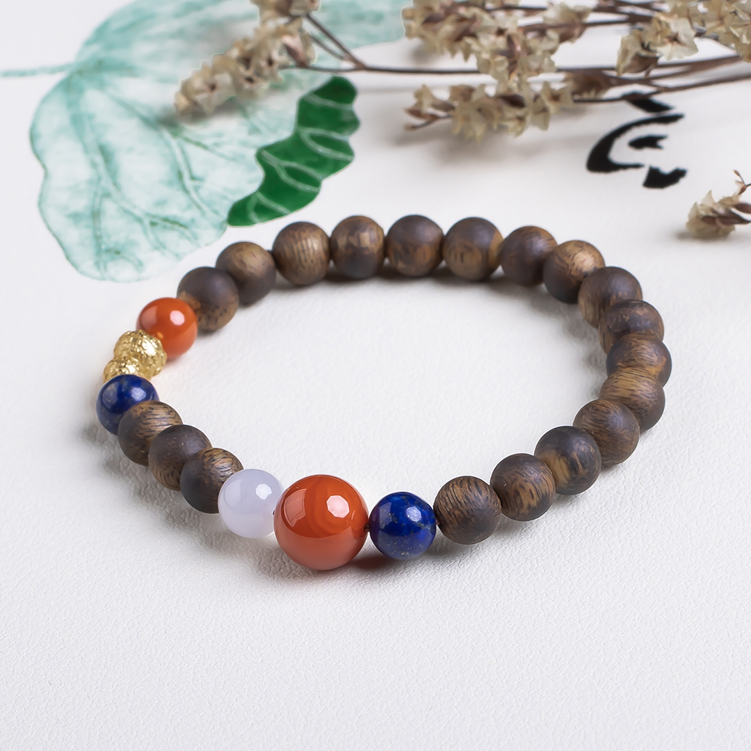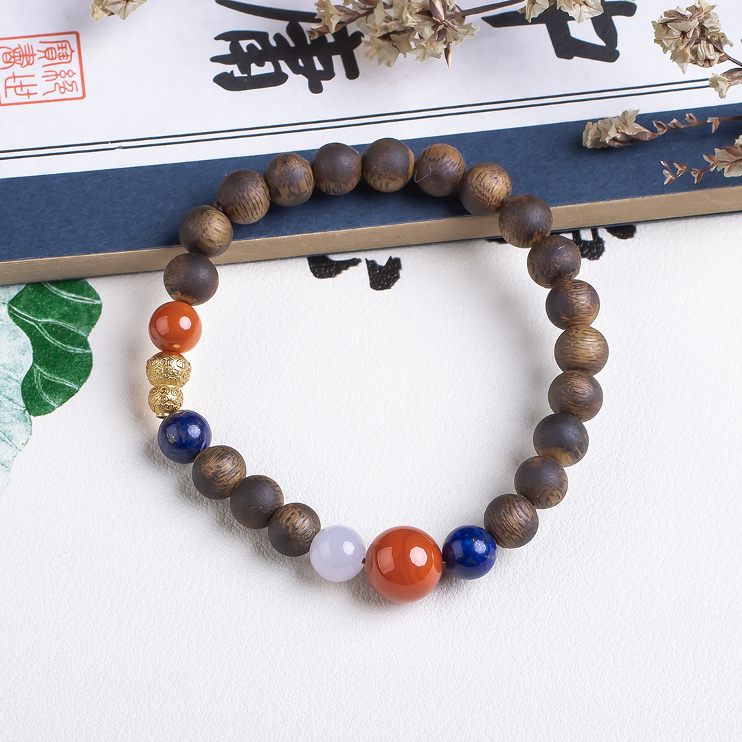 xy0505沉香+南红翡翠青金石葫芦手串,天然沉香约7.5mm,原色原味,香味自然清甜,南红、翡翠、青金石,古朴吉祥,再搭一枚葫芦,好运、纳福、遇贵人。