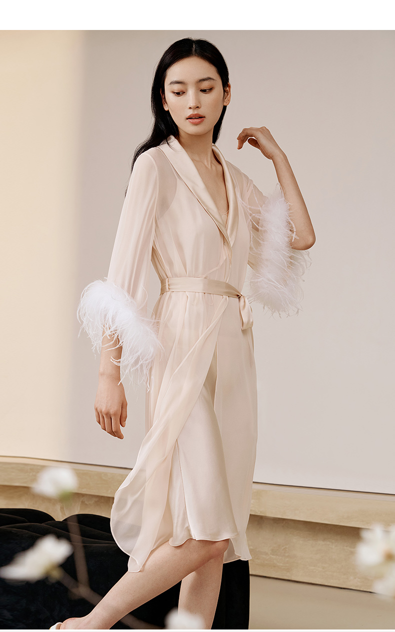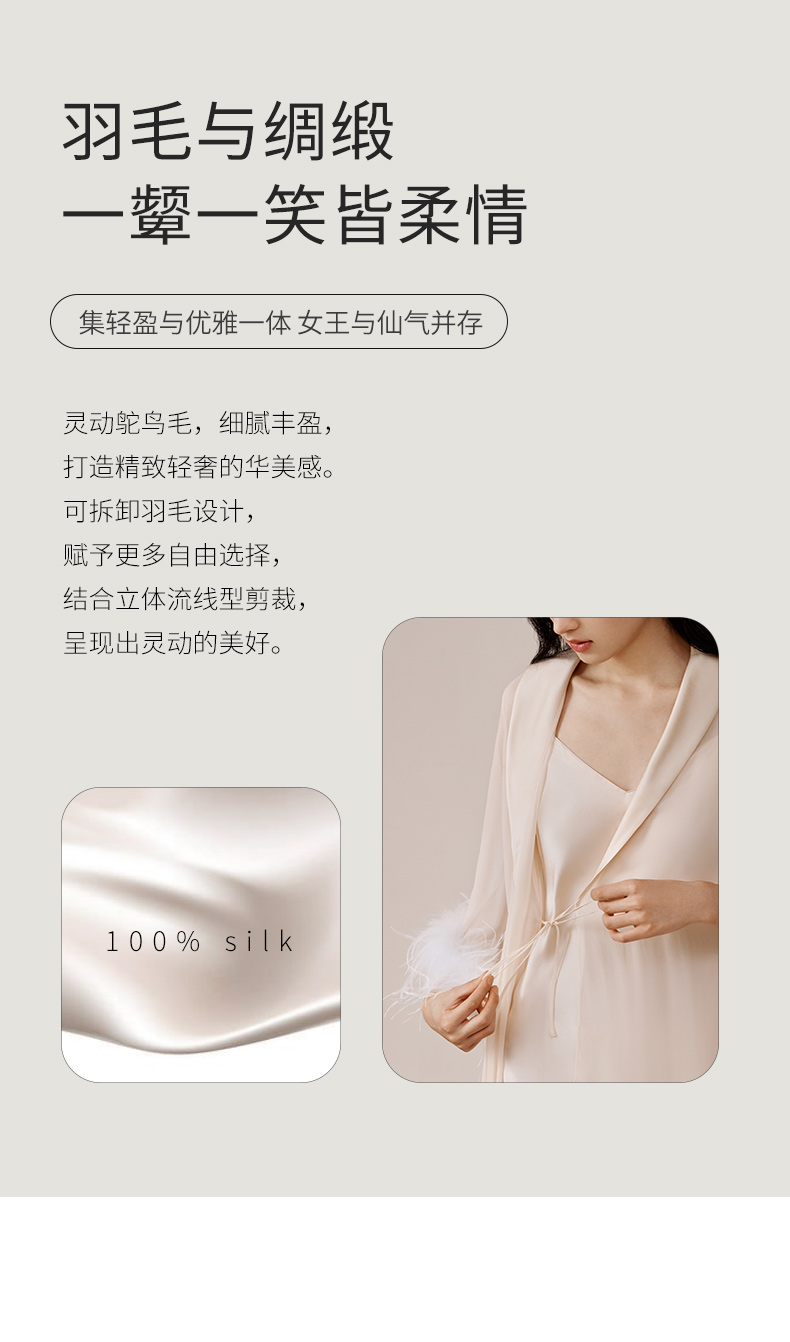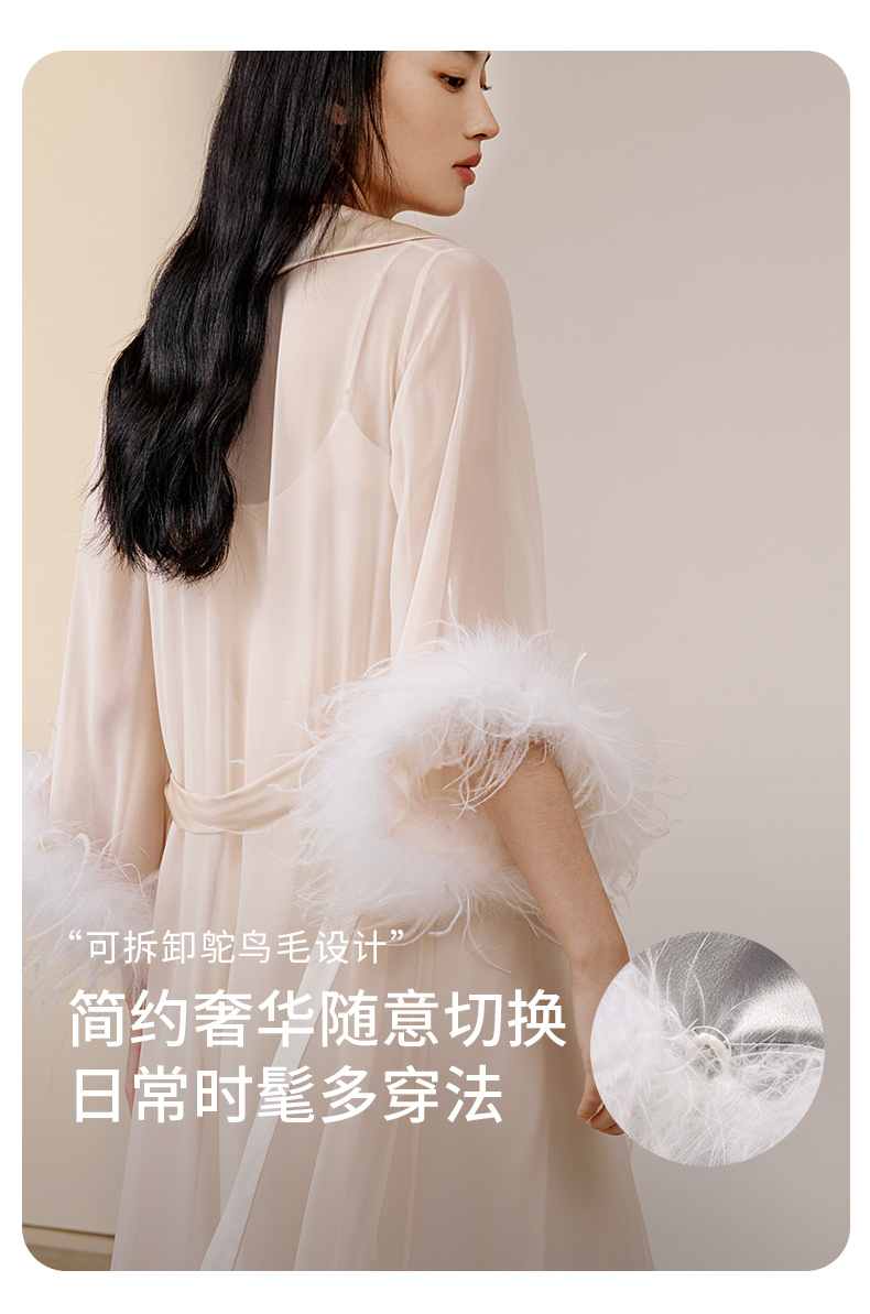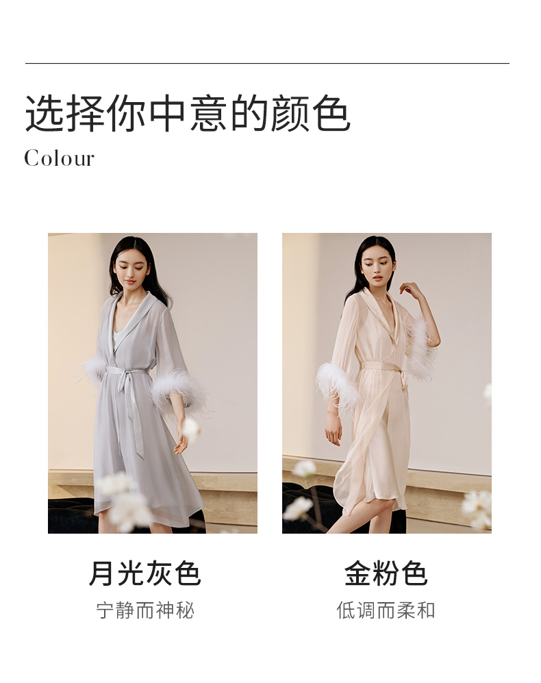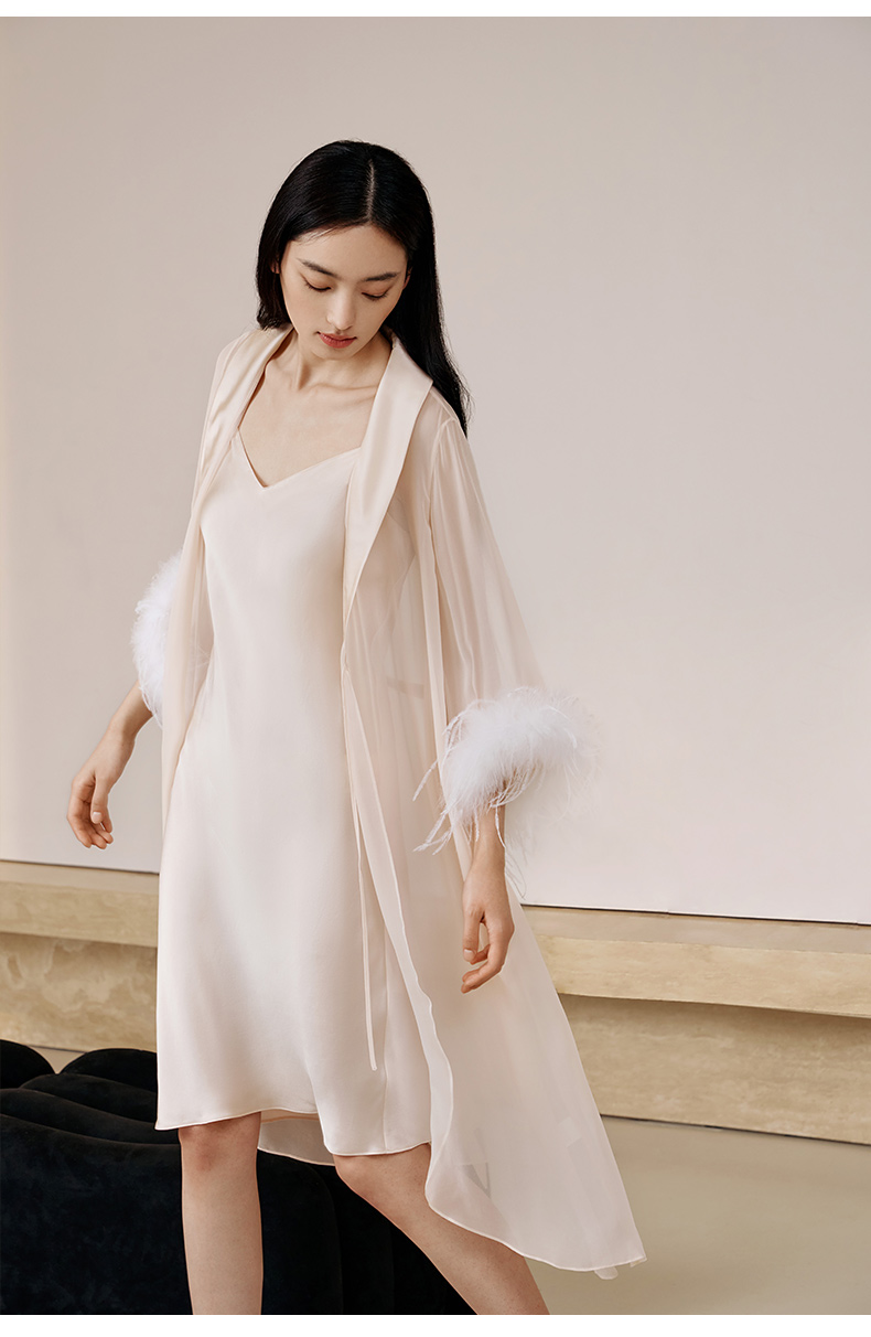 【逸羽华裳】真丝睡袍女100%桑蚕丝奢华多穿轻盈优雅睡衣吊带金三塔 YSFEC102