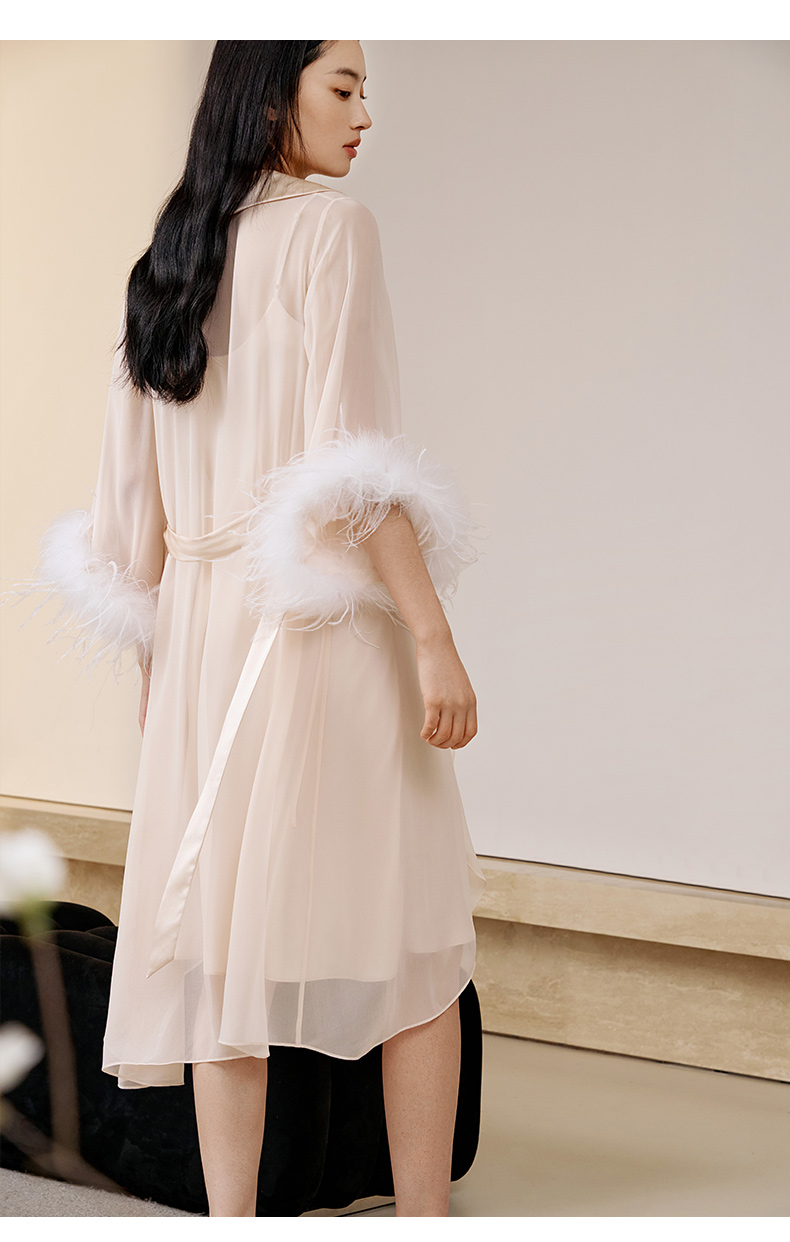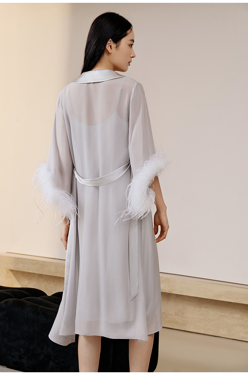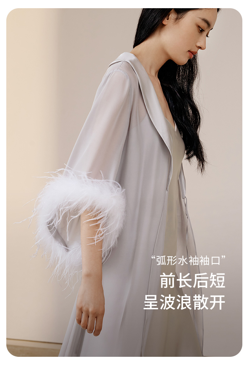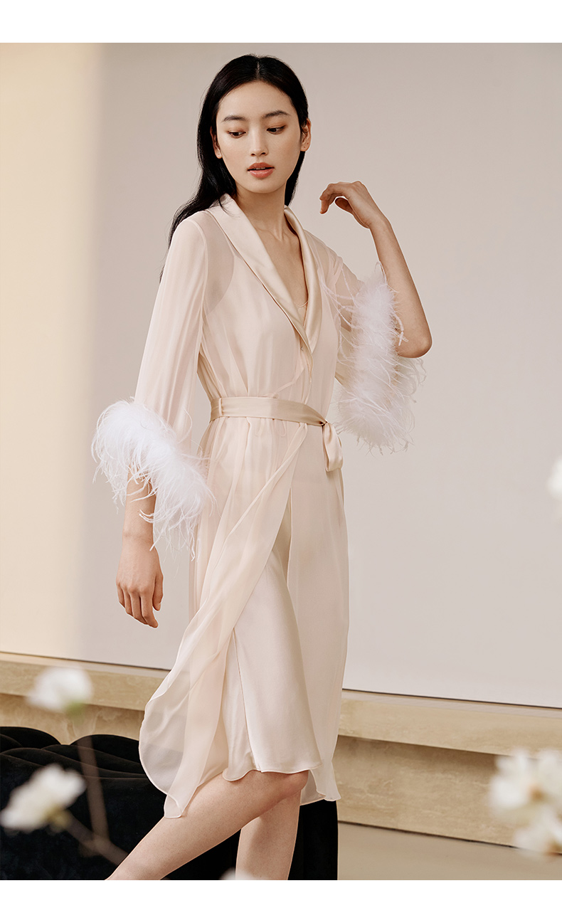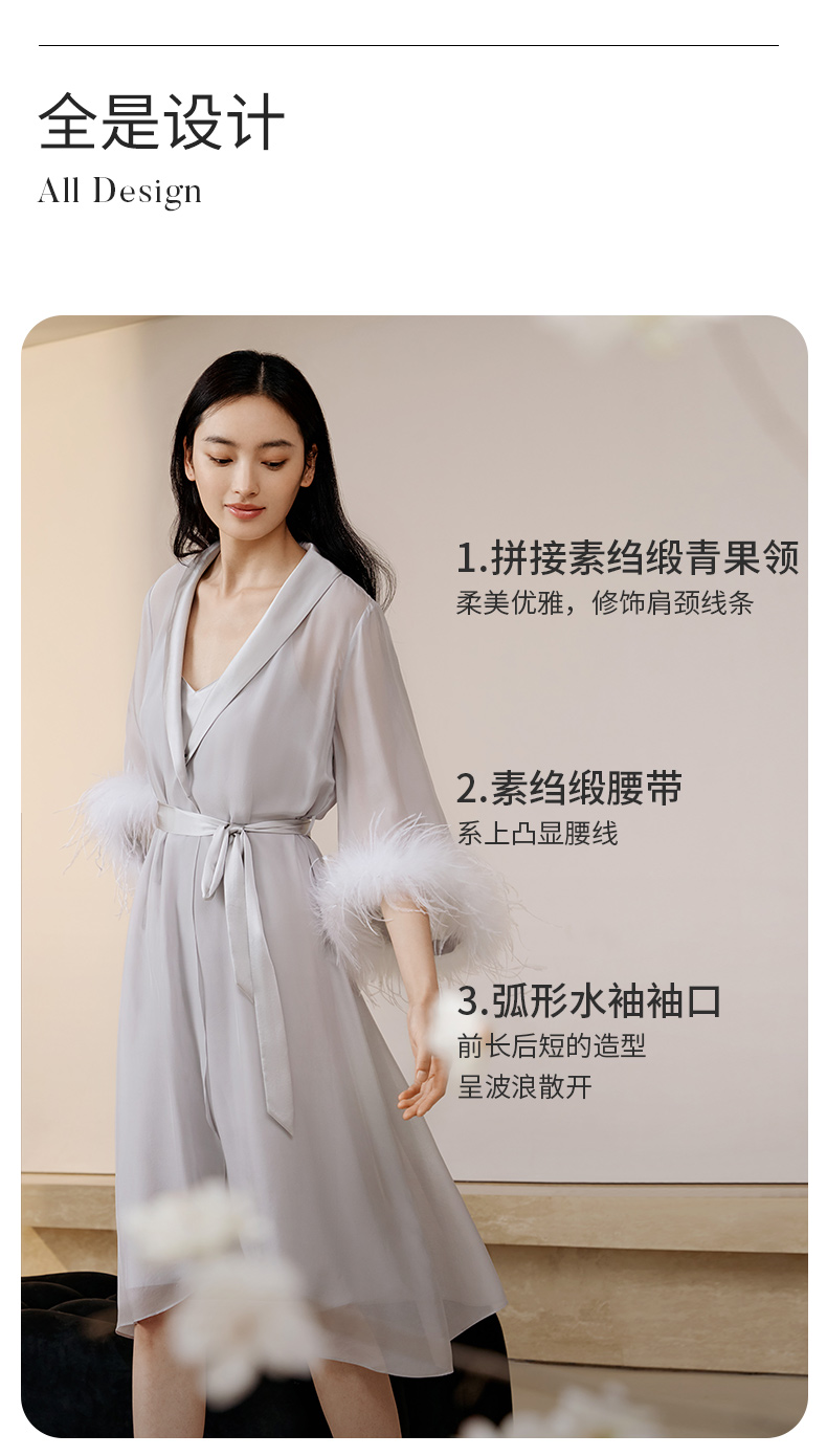 【逸羽华裳】真丝睡袍女100%桑蚕丝奢华多穿轻盈优雅睡衣吊带金三塔 YSFEC102