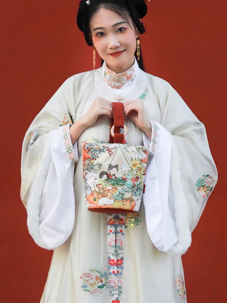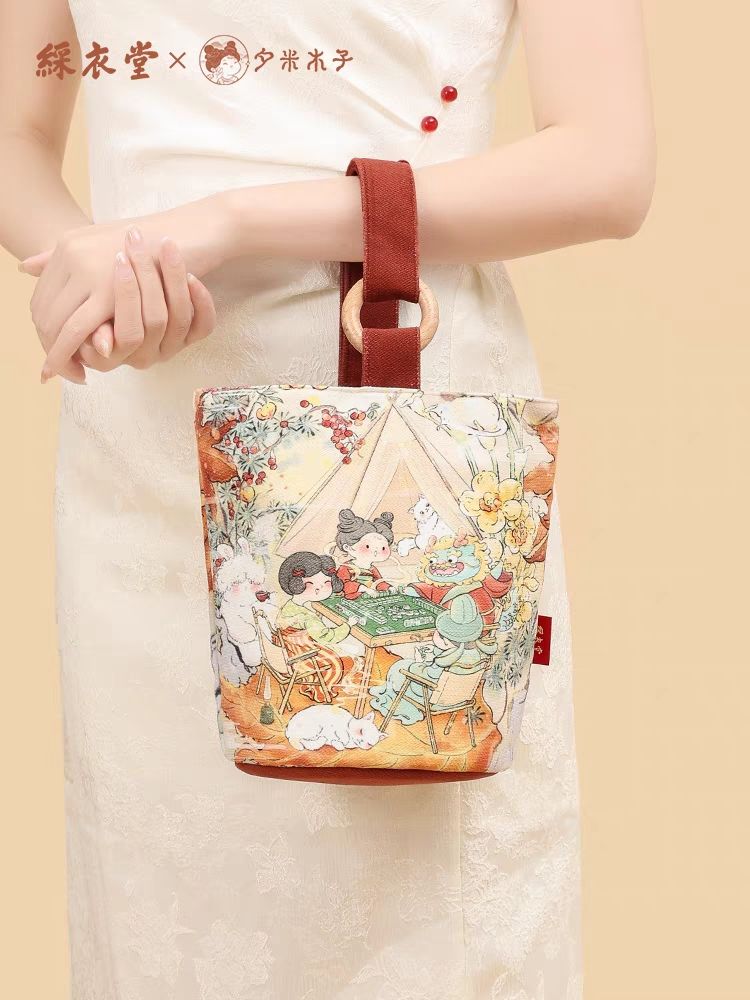 中国风手提遛弯水桶包包手提单肩腋下包通勤包女