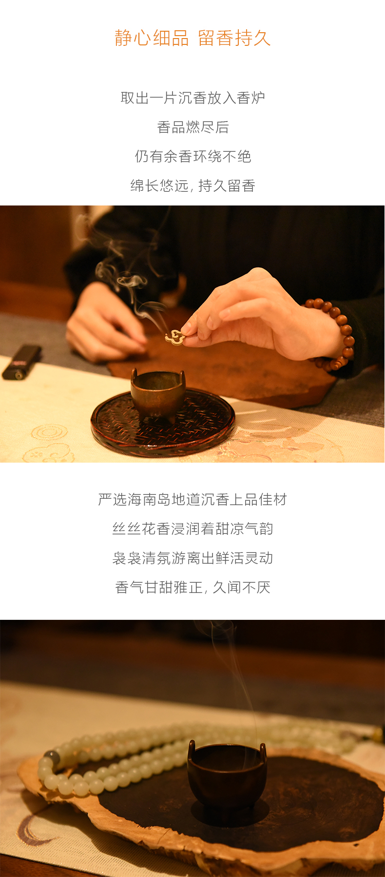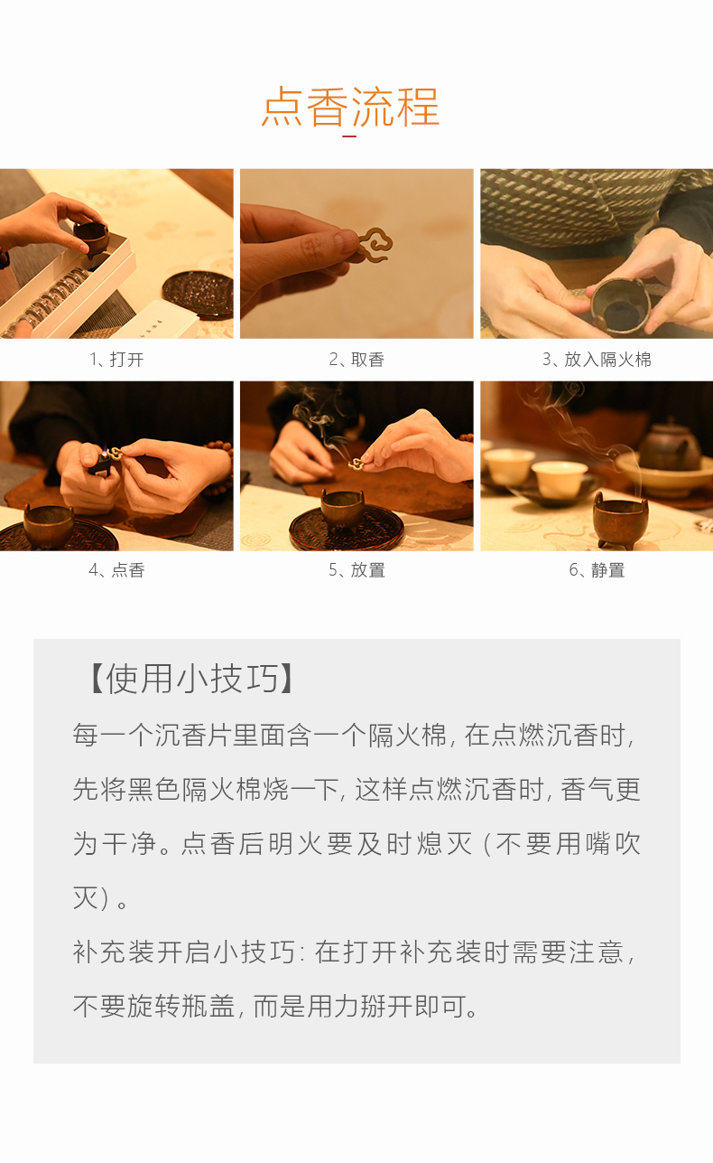 好的沉香容易熄灭,请点香时,按照步骤,先垫隔热棉,再点香,置于隔热棉上面,否则香片有可能不能烧完哦。