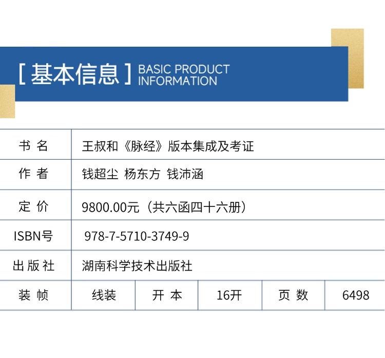 王叔和《脉经》版本集成及考证 《伤寒论》文献研究首席专家钱超尘教授传世巨献