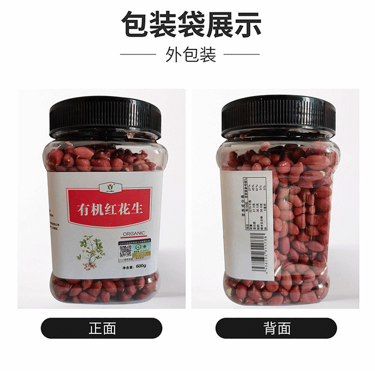 有机红花生罐装 600g/罐 2罐/3罐/5罐