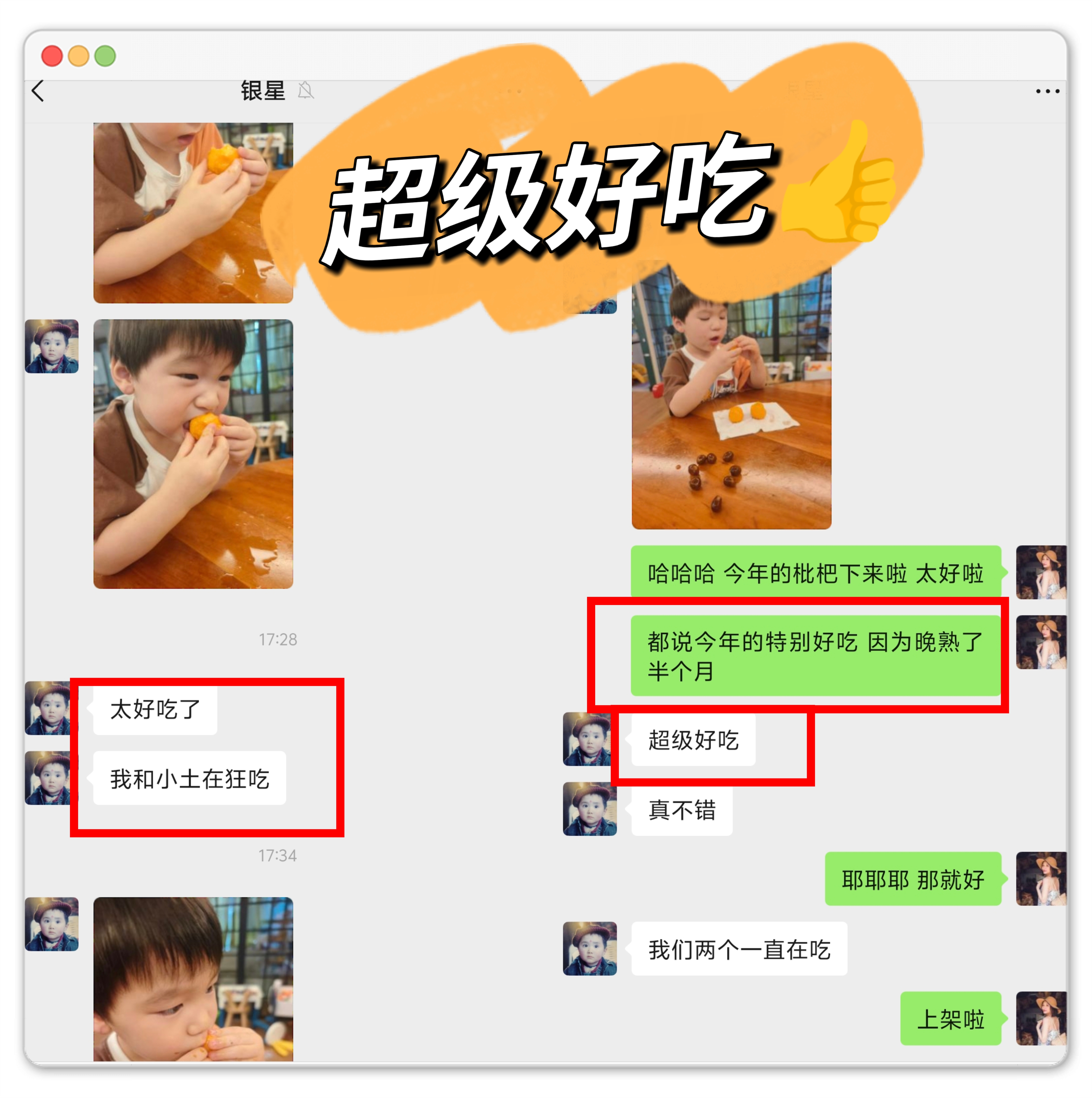 温馨提示: 由于枇杷是现摘现发,收到果果先吃颜色最黄的, 常温放几天会自然退酸,越放越甜。