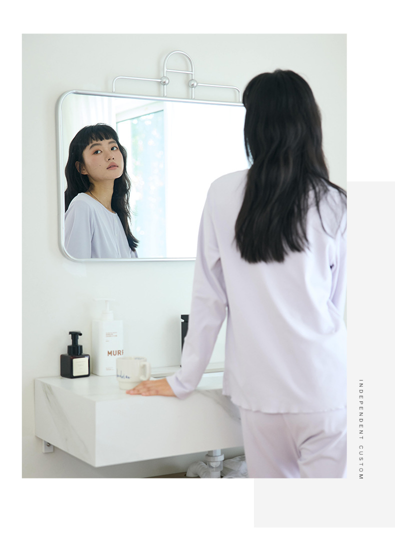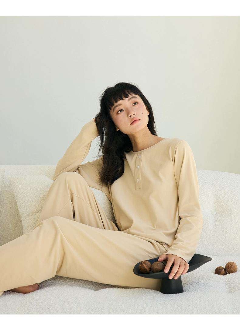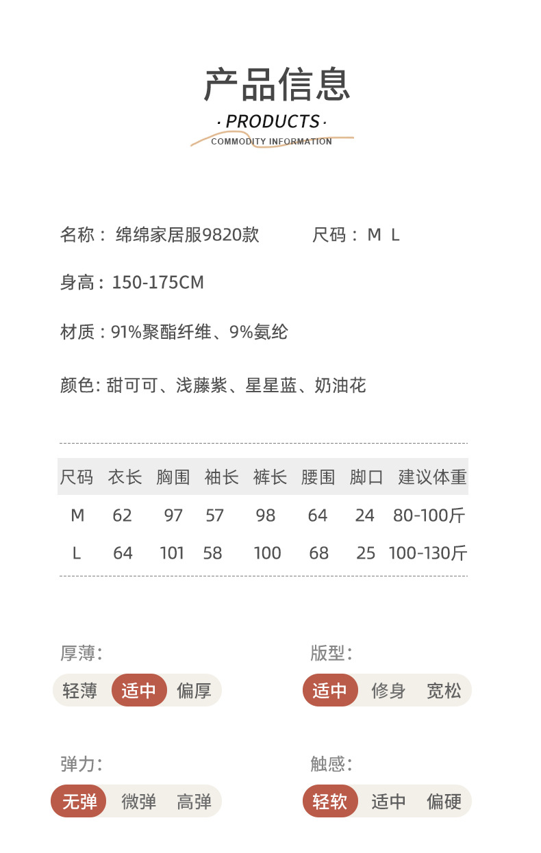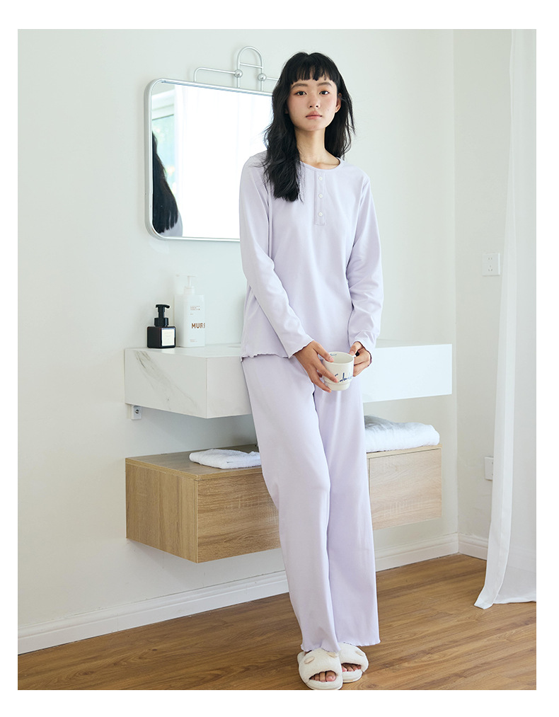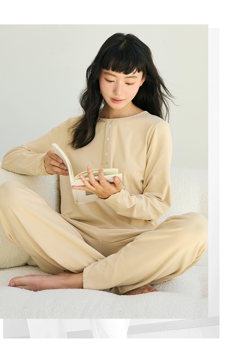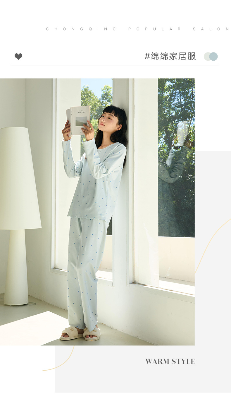 【免穿文胸】春款绵绵纽扣家居服女纯色长袖带胸垫套装舒适印花软糯微弹睡衣 居家无束缚~