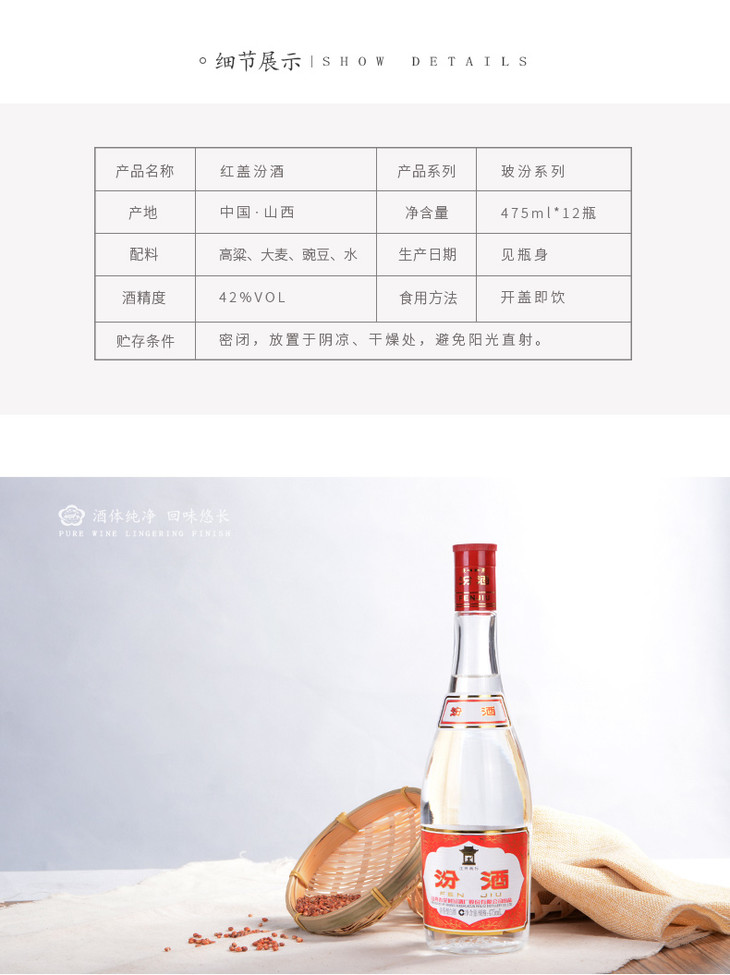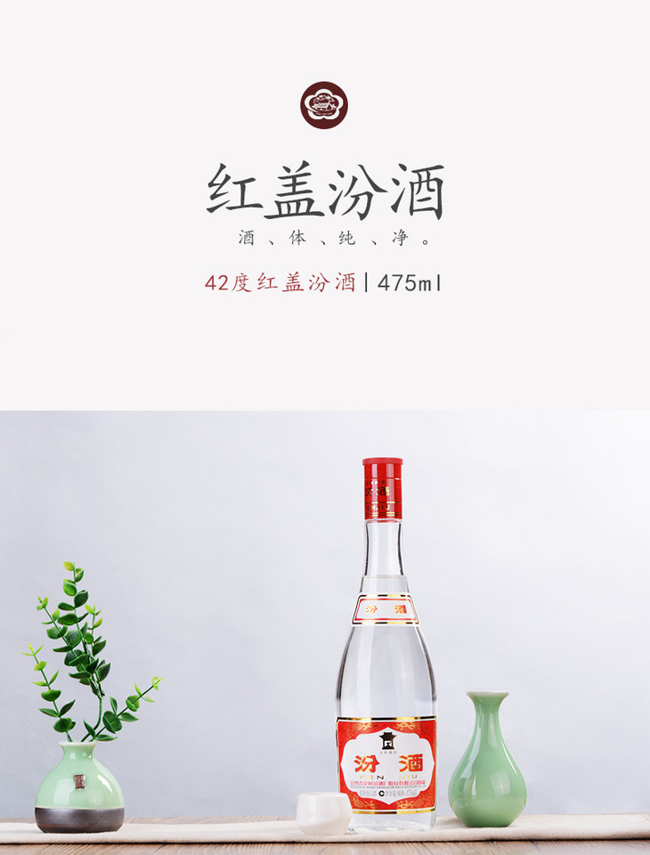山西汾酒杏花村酒 玻汾酒42度 红盖汾475mL*12瓶整箱装国产白酒