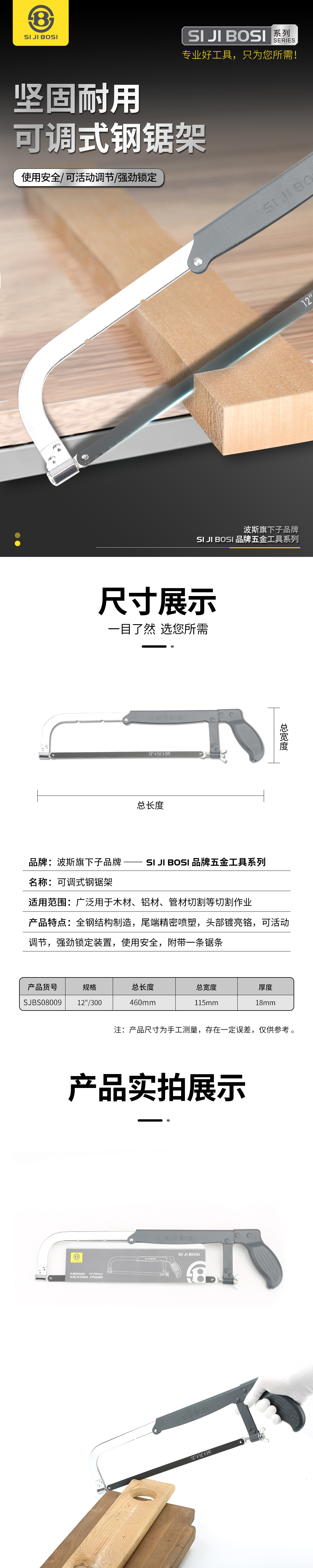 波斯 可调式钢锯架 12"/300mm SJBS08009