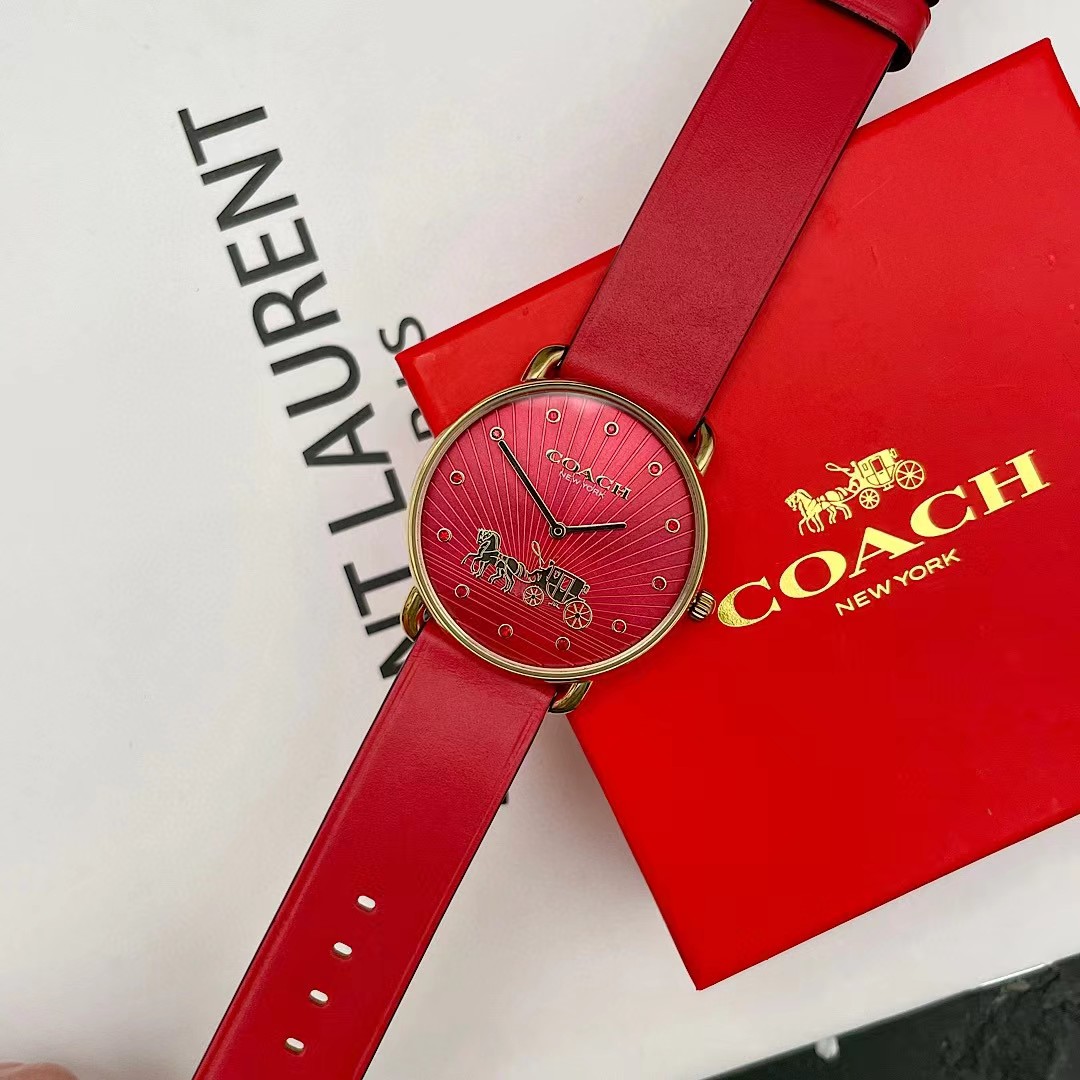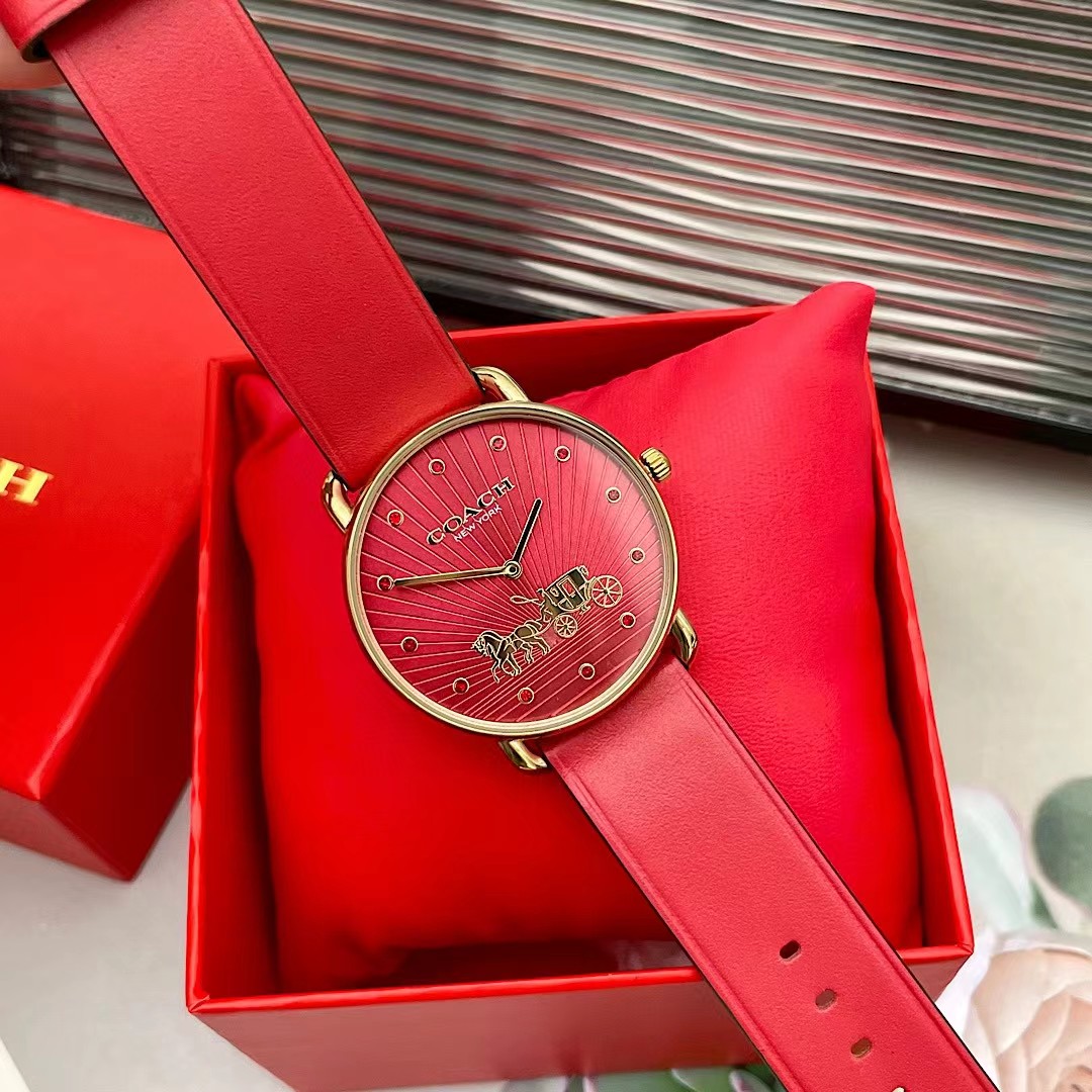 2026年新款马年生肖石英女表手表套盒,表盘上有精典马车logo元素,马年限定,吉祥启程,时尚简约小牛皮,红红火火大红色。