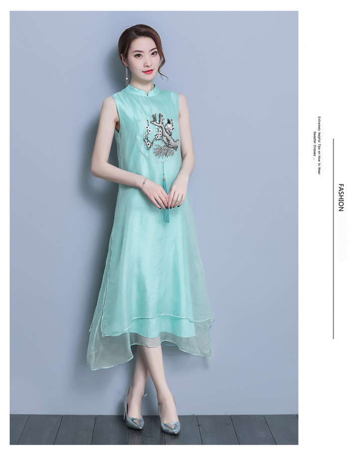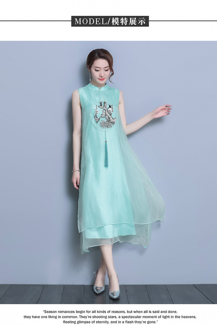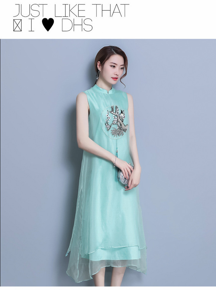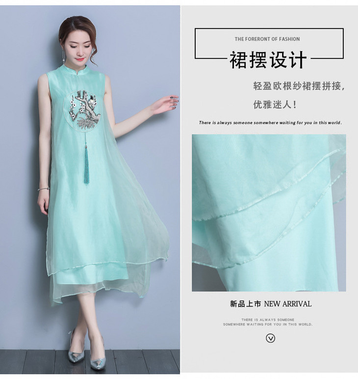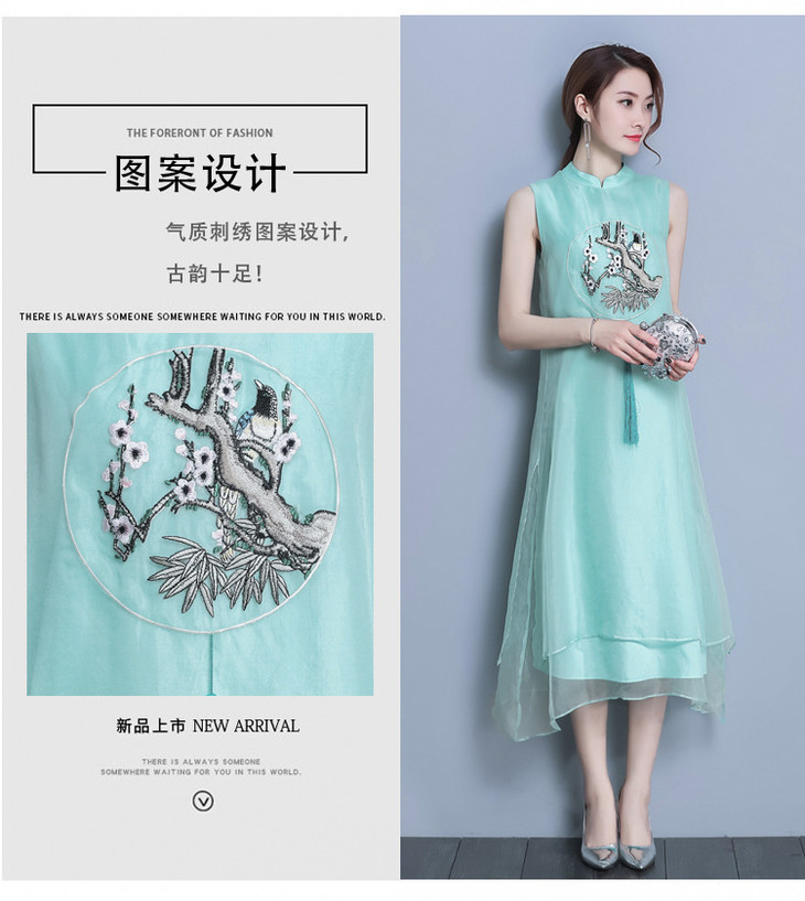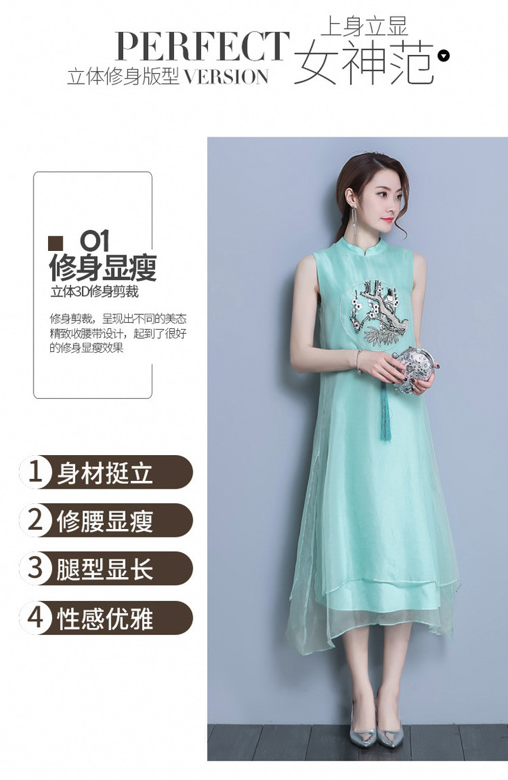 【服饰鞋包】*夏装新款女装民族风刺绣中长款打底真丝欧根纱连衣裙a字裙