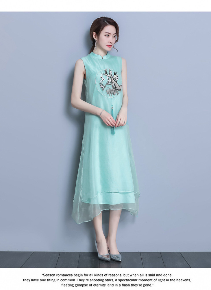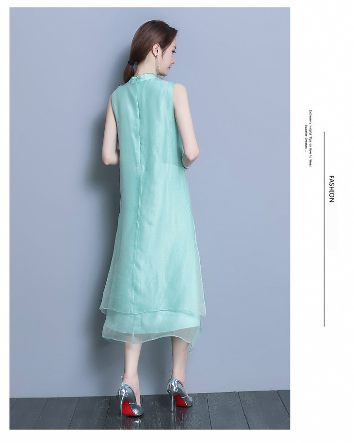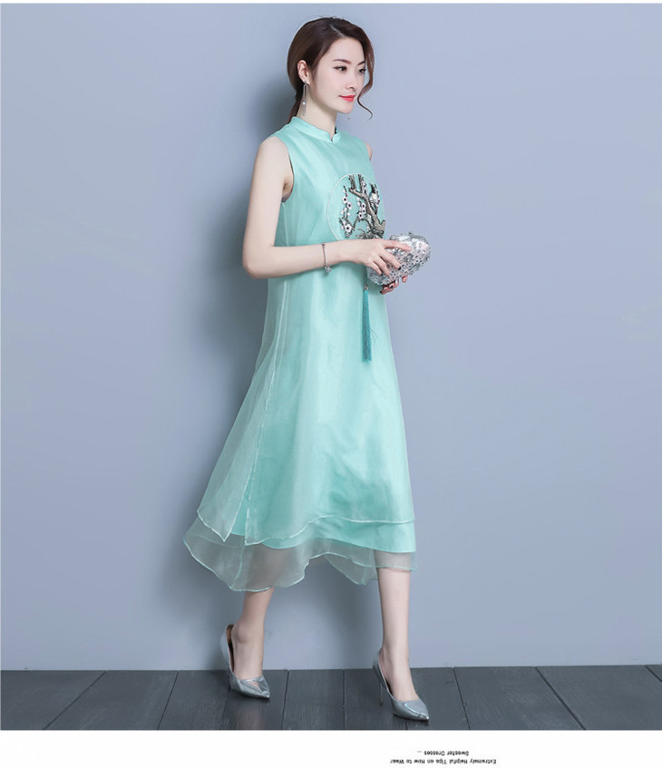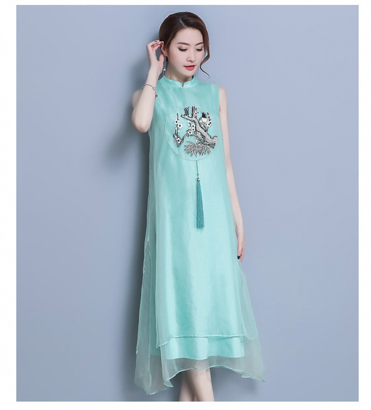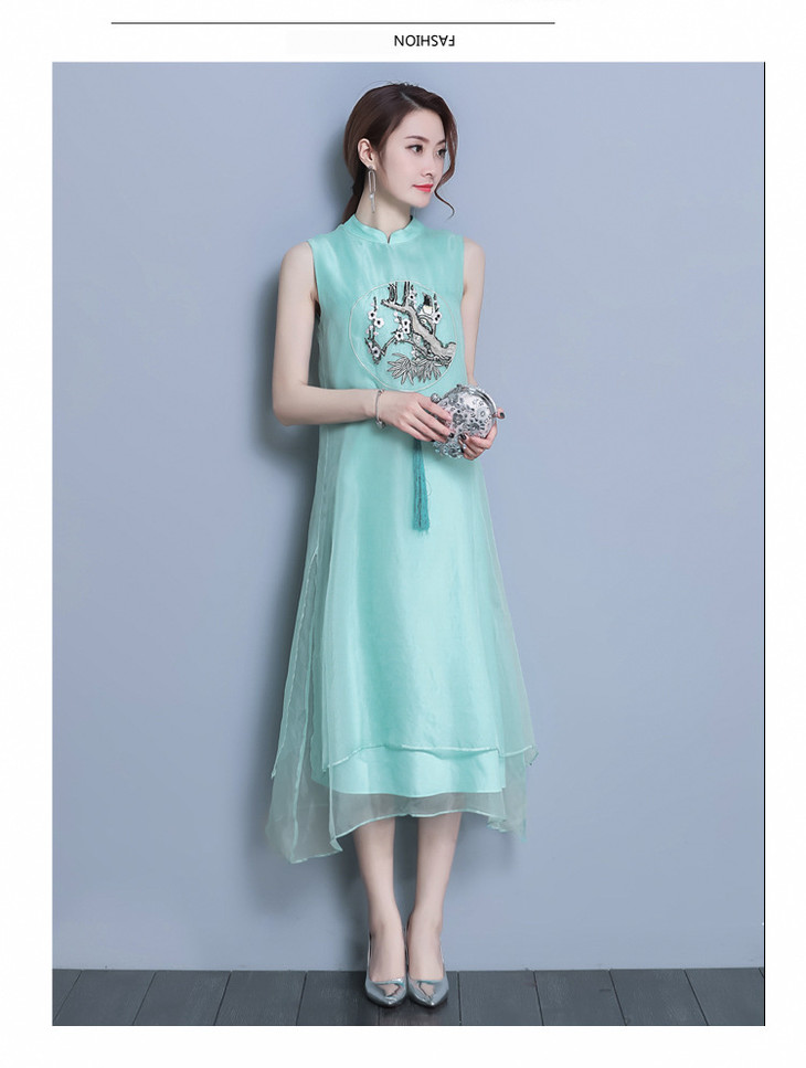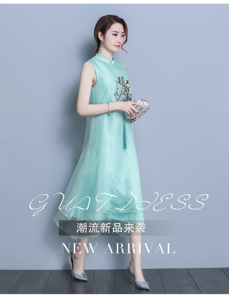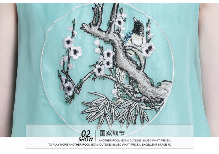 【服饰鞋包】*夏装新款女装民族风刺绣中长款打底真丝欧根纱连衣裙a字裙