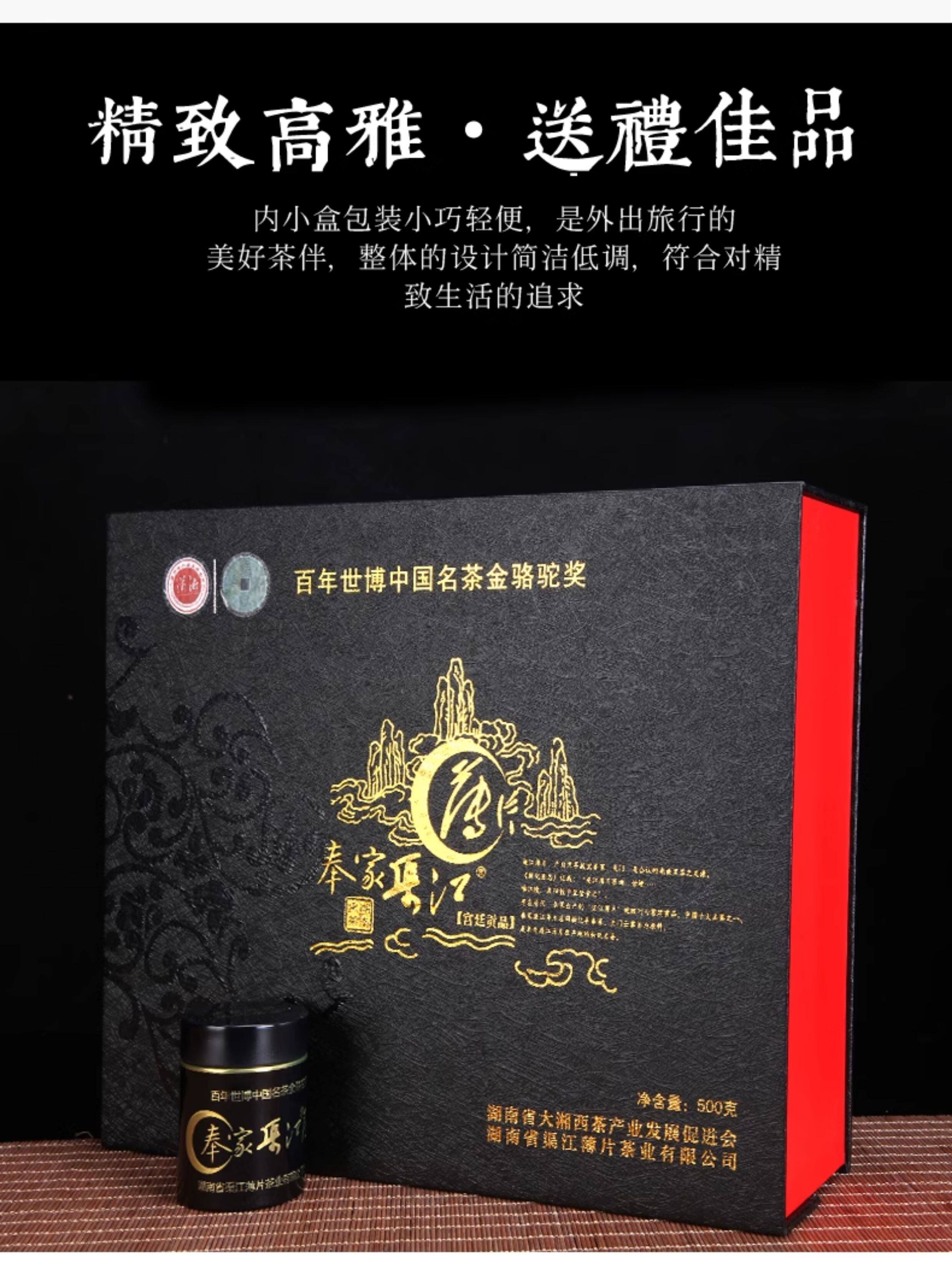湖南奉家渠江薄片 新化黑茶正宗茶叶贡品礼盒装 安化黑茶发酵熟茶