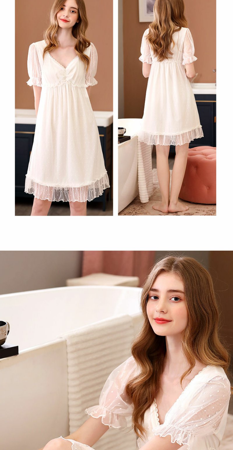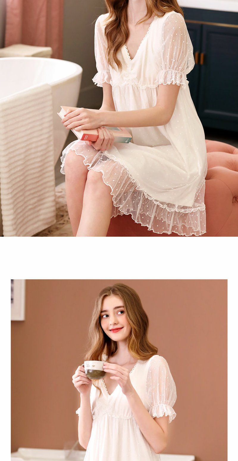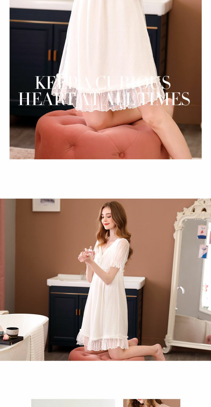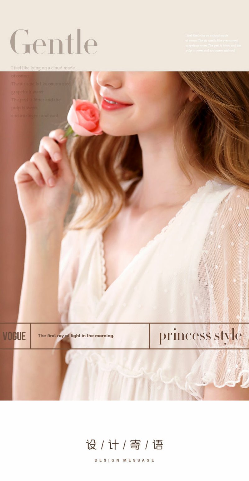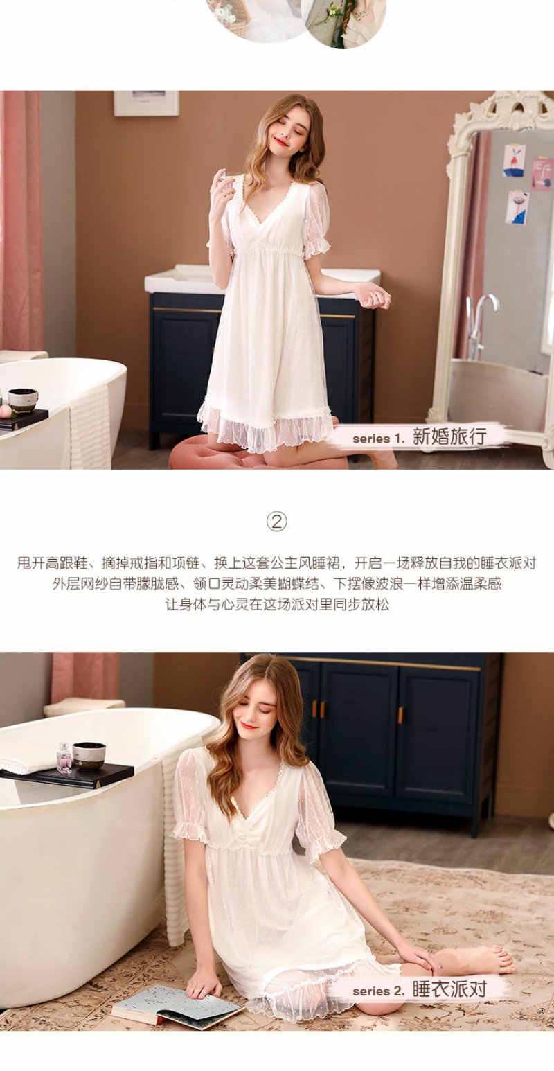 睡衣女夏季短袖甜美可爱公主风宫廷蕾丝性感带胸垫睡裙子夏天薄款