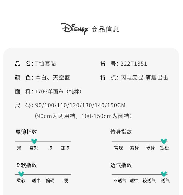 迪士尼童装 男童短袖t恤套装夏装新款儿童运动休闲两件套