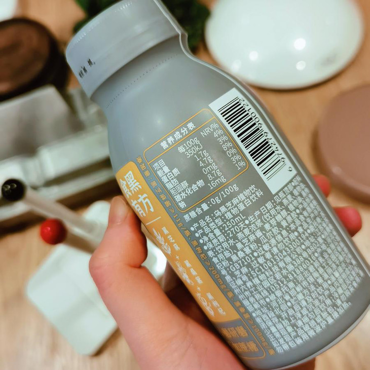 六养黑芝麻燕麦饮一瓶250ml,就跟瓶装酸奶差不多大,用来搭配早餐或是当下午茶都很不错,方便得很,全家都可以饮用,佛系养生的朋友更是可以安排起来哦!