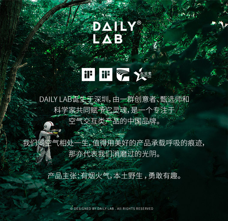 - DAILY LAB|日常实验室,立足东方美学,是专注于「香气可视化」的轻奢空气交互品牌。