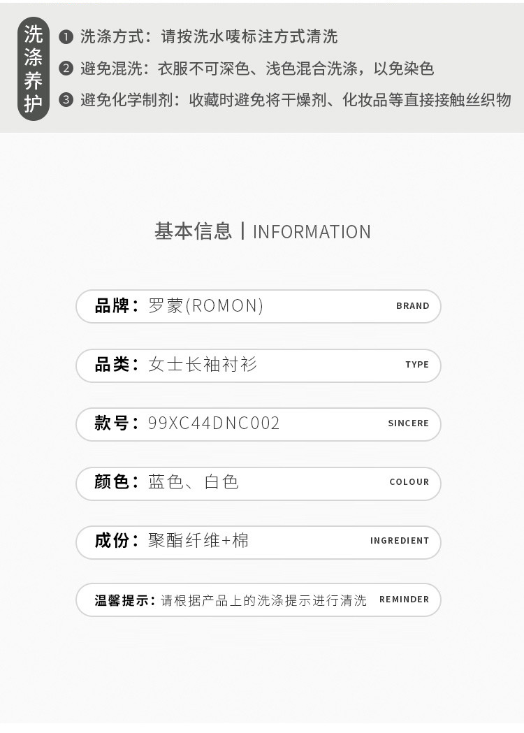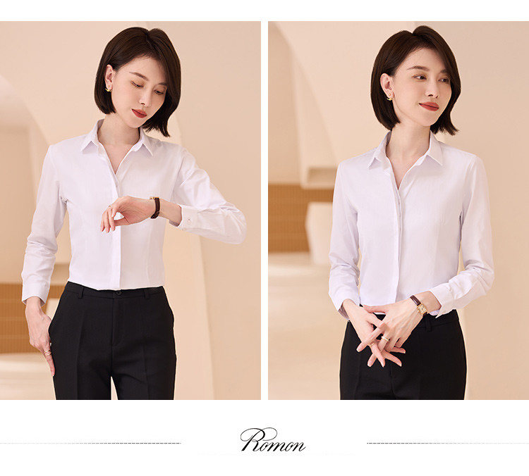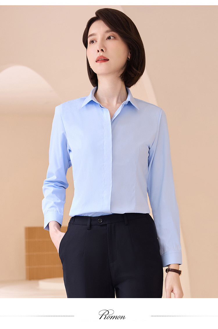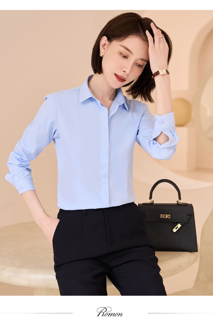 【精美刺绣】罗蒙春季女装长袖衬衫女士正装商务通勤职业工装棉质衬衣