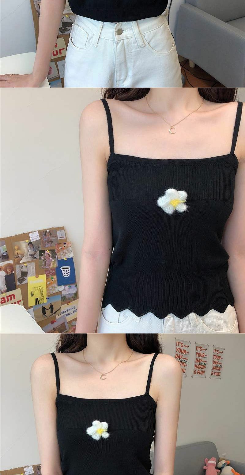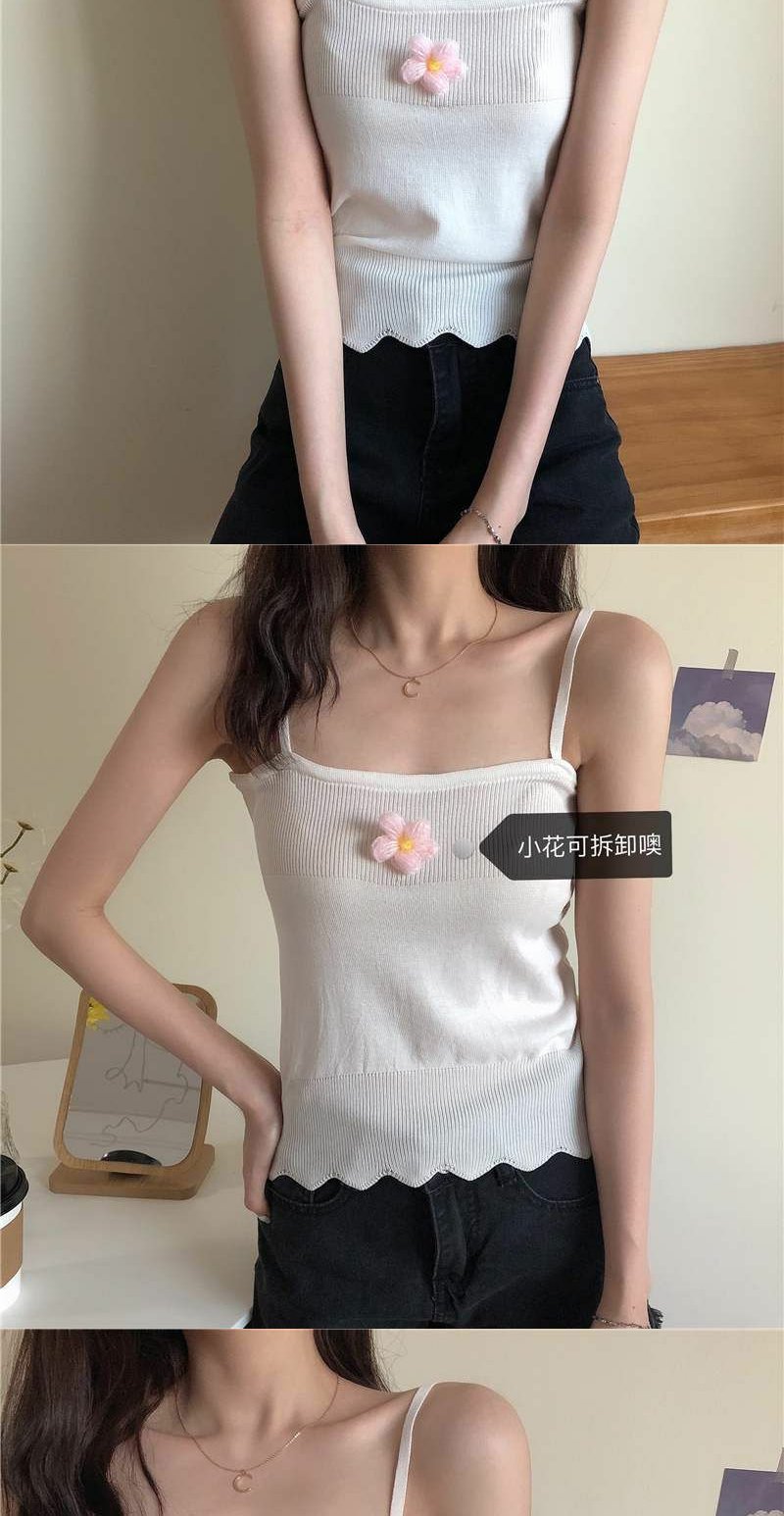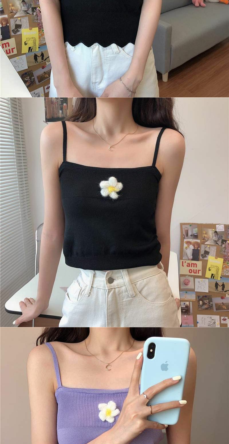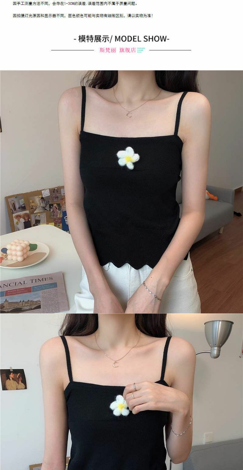 2021夏季新款韩版花朵修身显瘦针织无袖吊带内搭网红背心短上衣女
