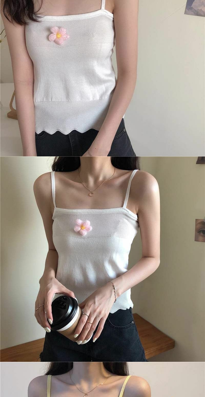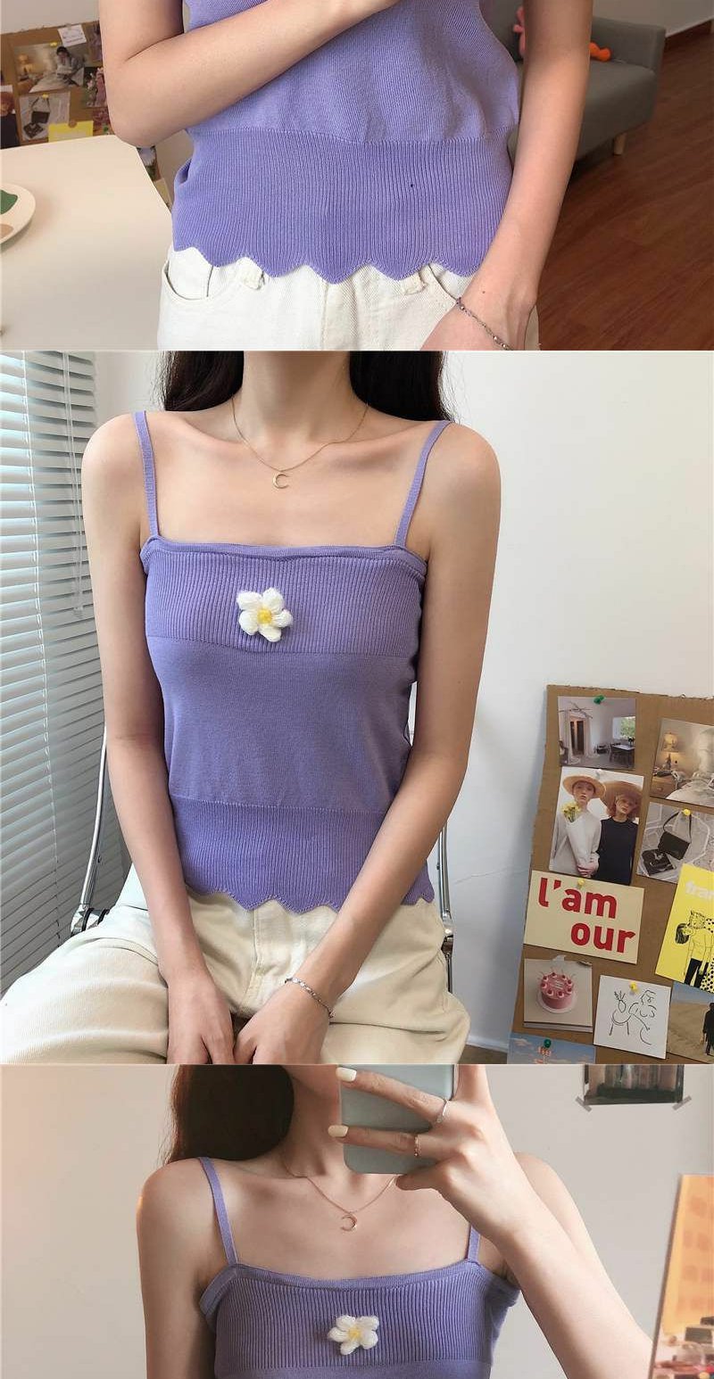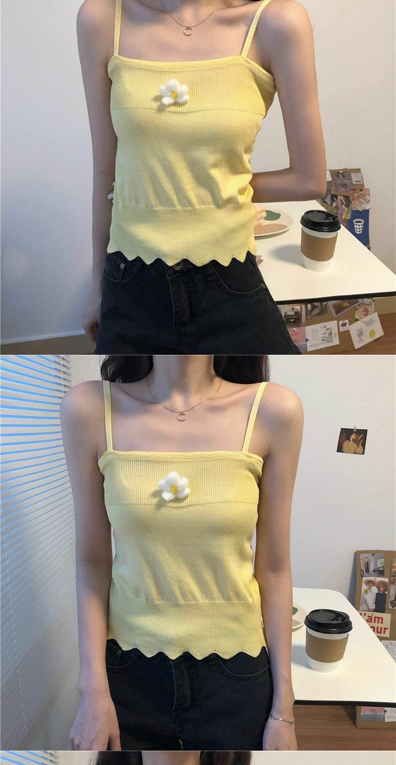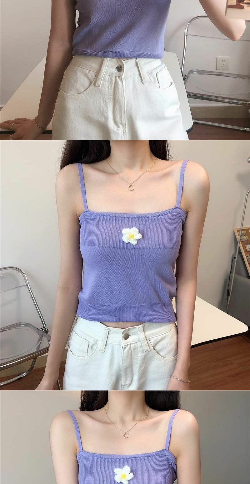 2021夏季新款韩版花朵修身显瘦针织无袖吊带内搭网红背心短上衣女