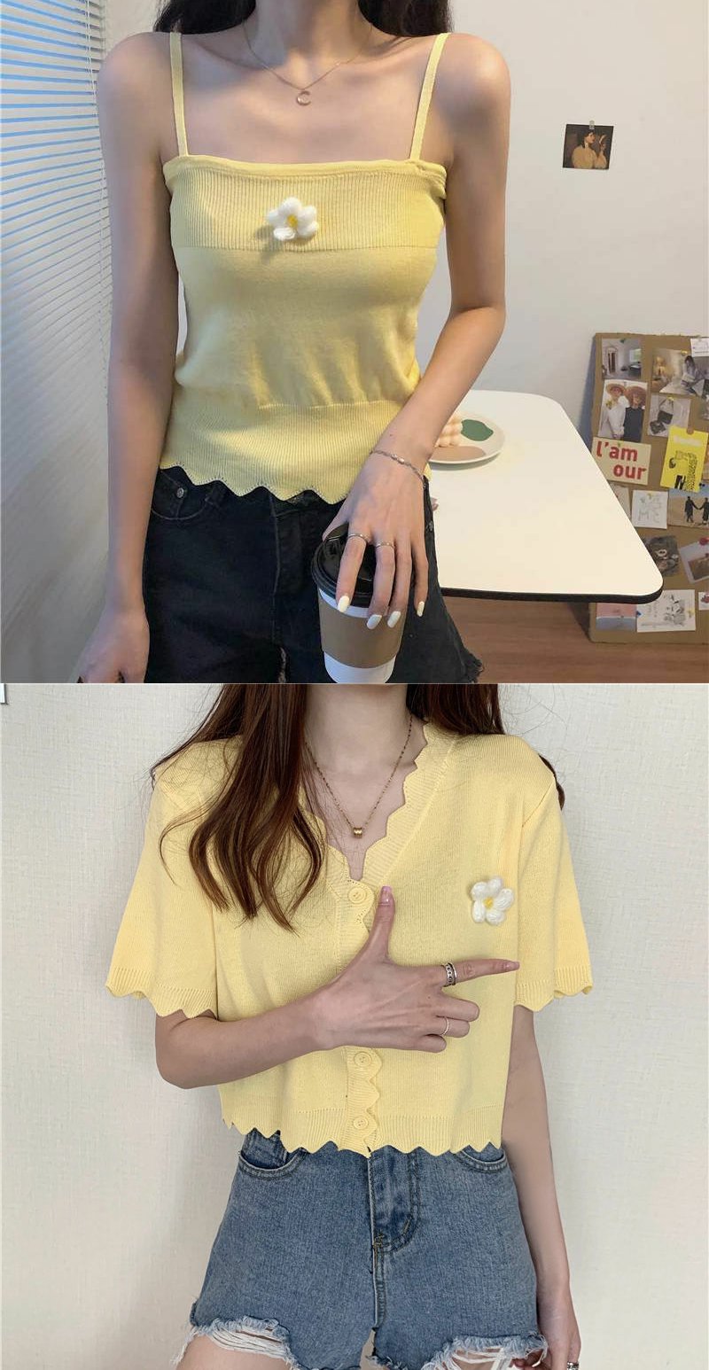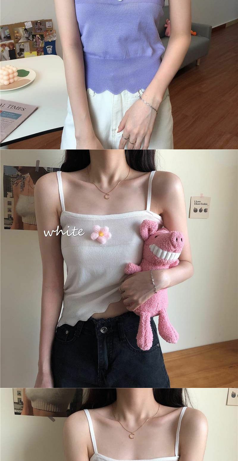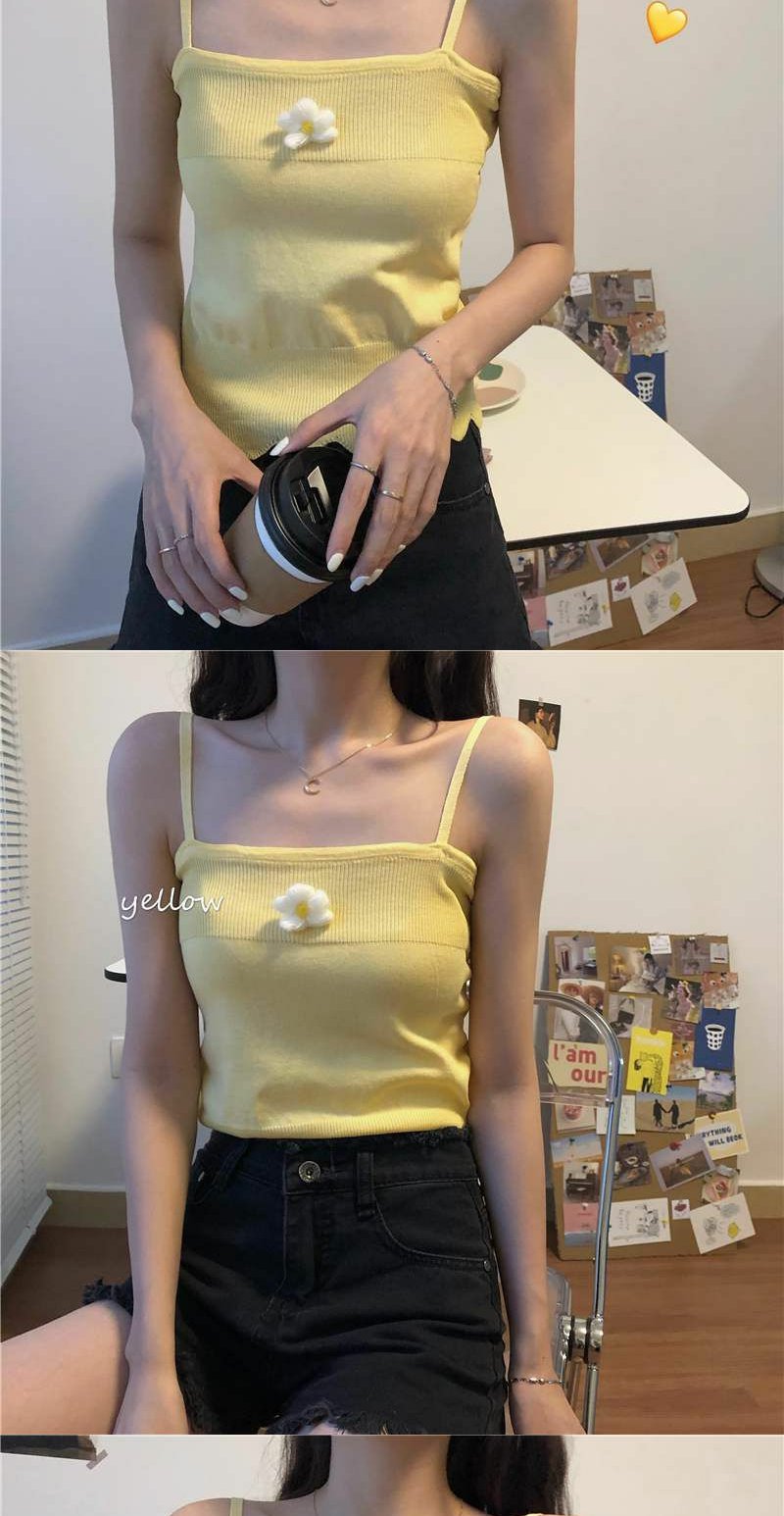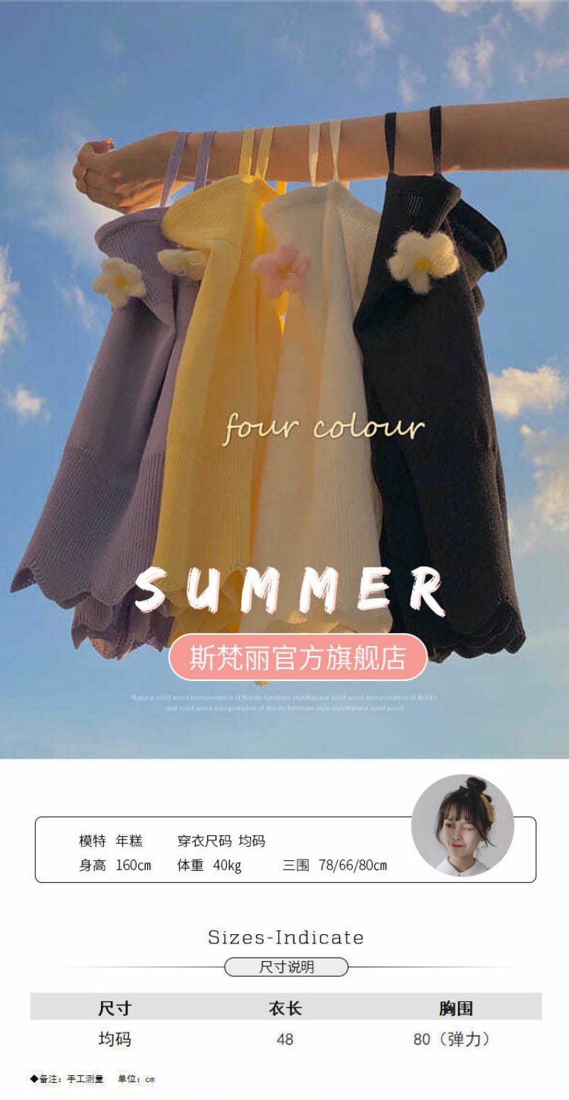 2021夏季新款韩版花朵修身显瘦针织无袖吊带内搭网红背心短上衣女