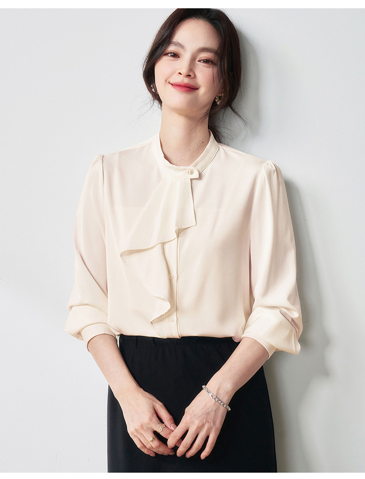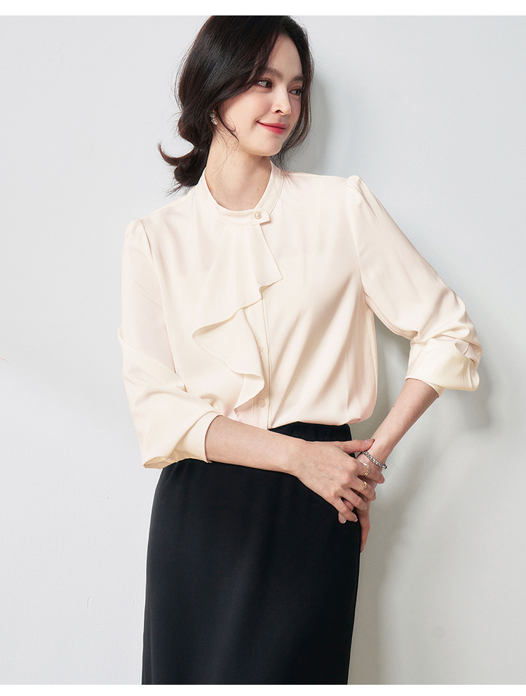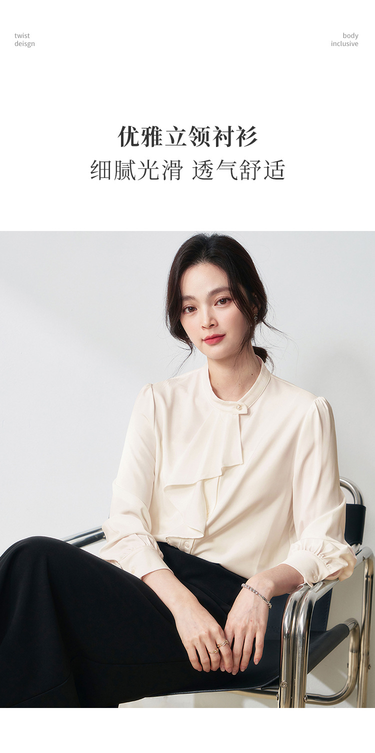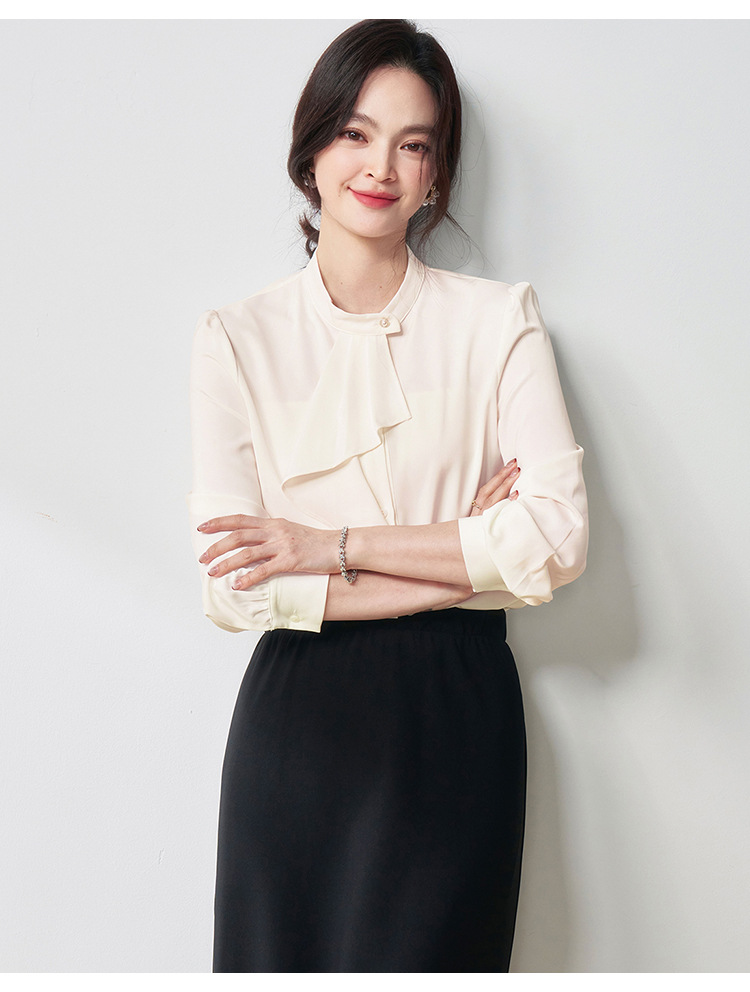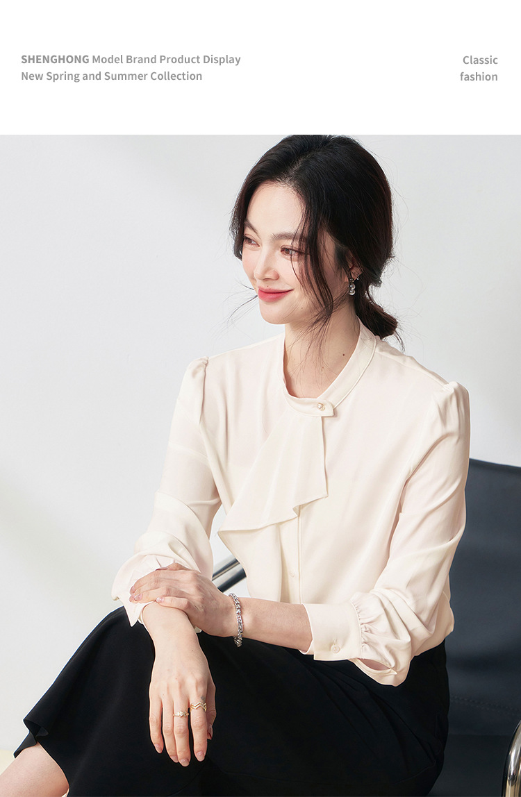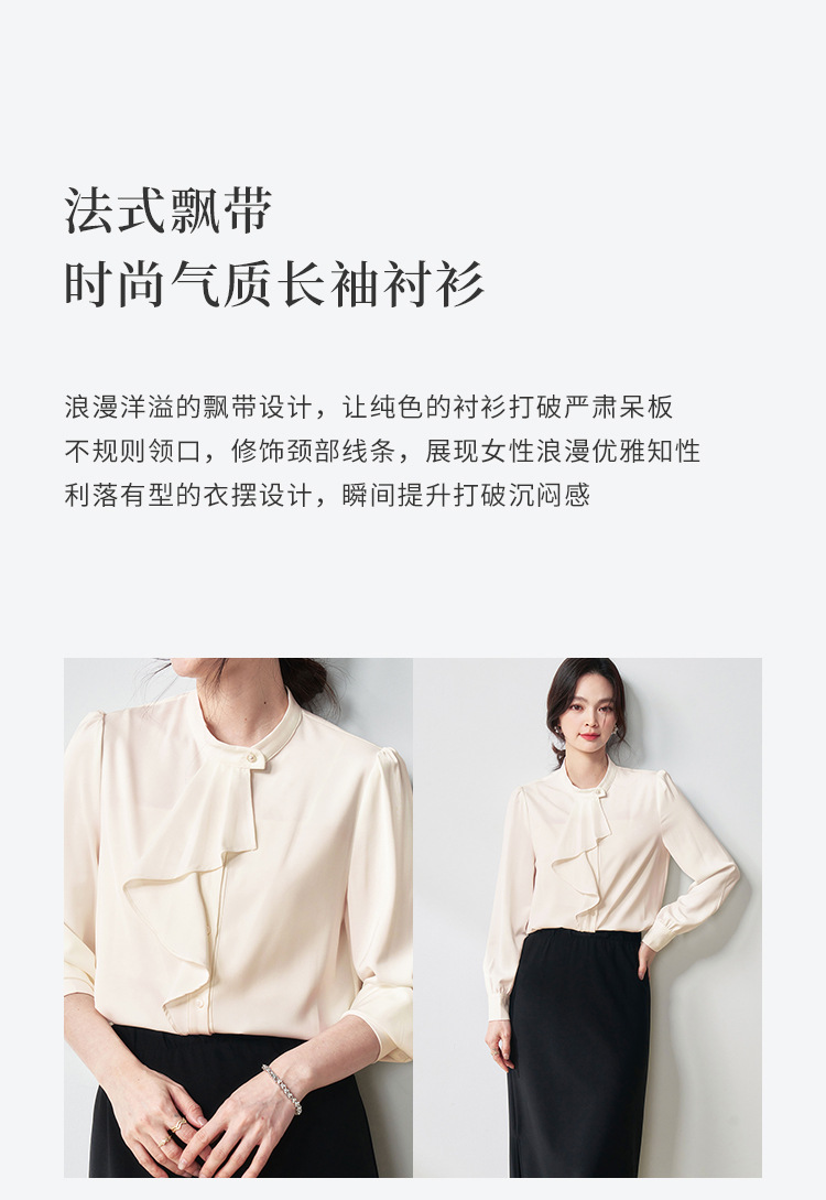 25春轻职场温柔风不规则飘带衬衫设计感OL通勤职业长袖衬衣!