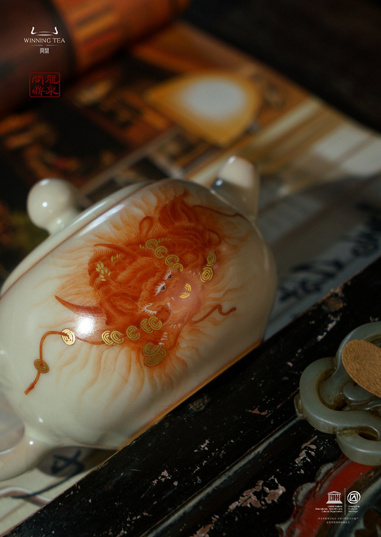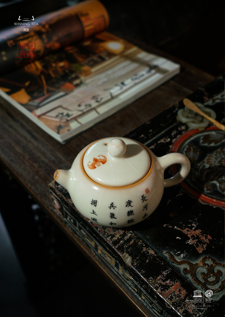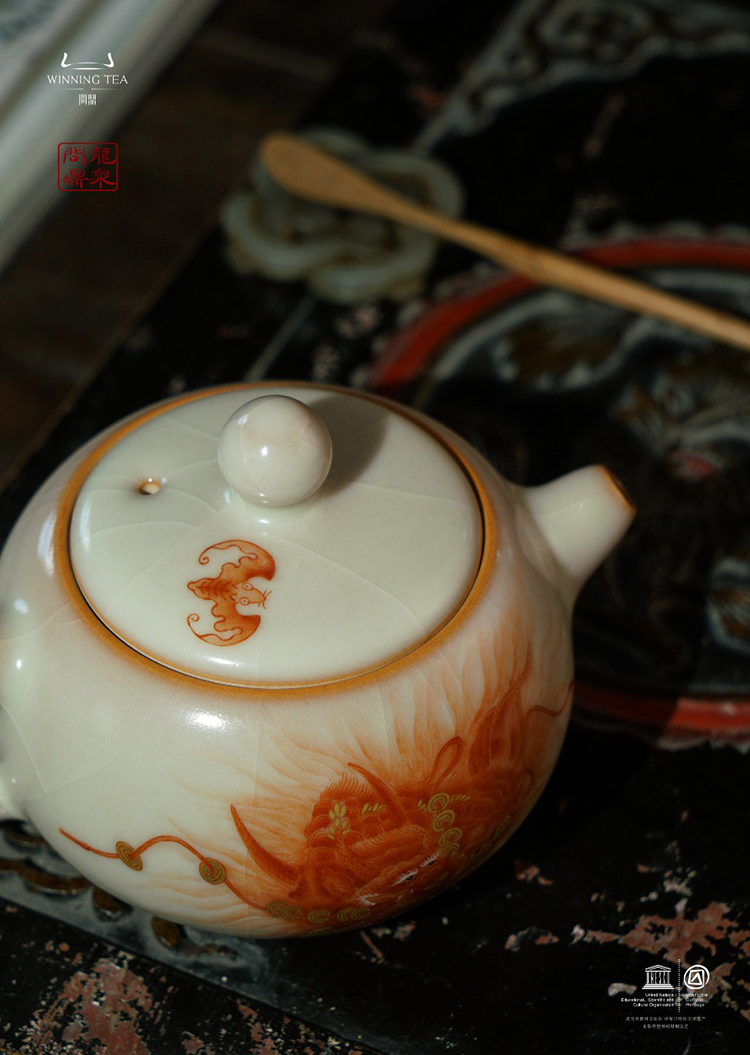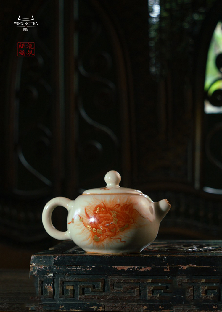 龙泉问鼎彩绘哥窑西施壶(纳财积福)(缺货)