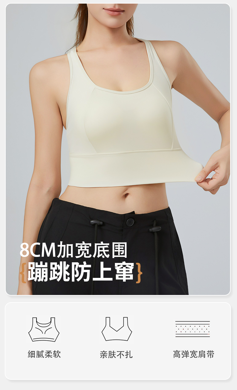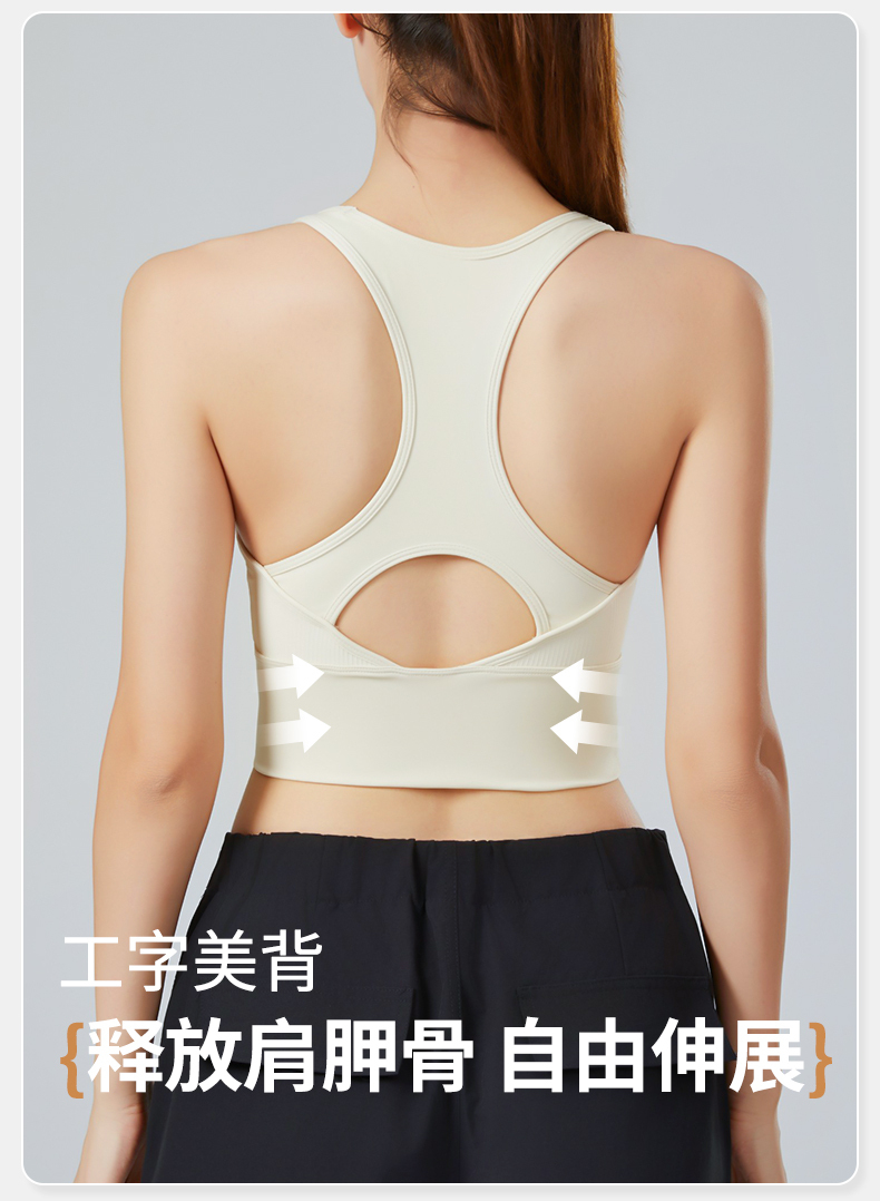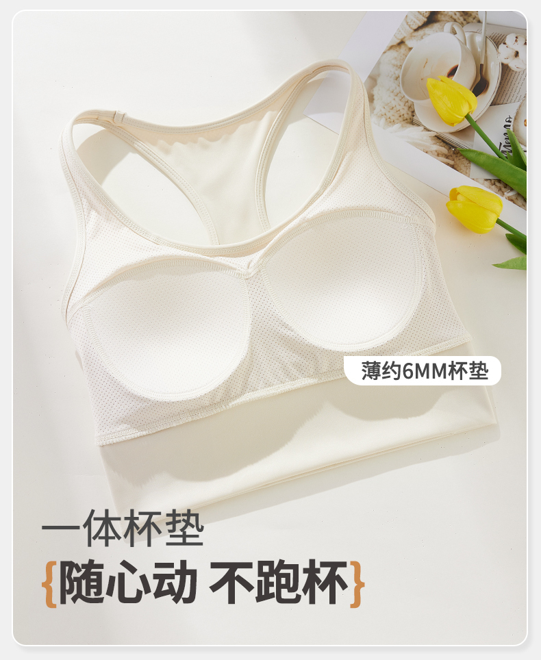 雅黛俪女士运动文胸一体式固定杯防下垂背心式美背内衣新款文胸