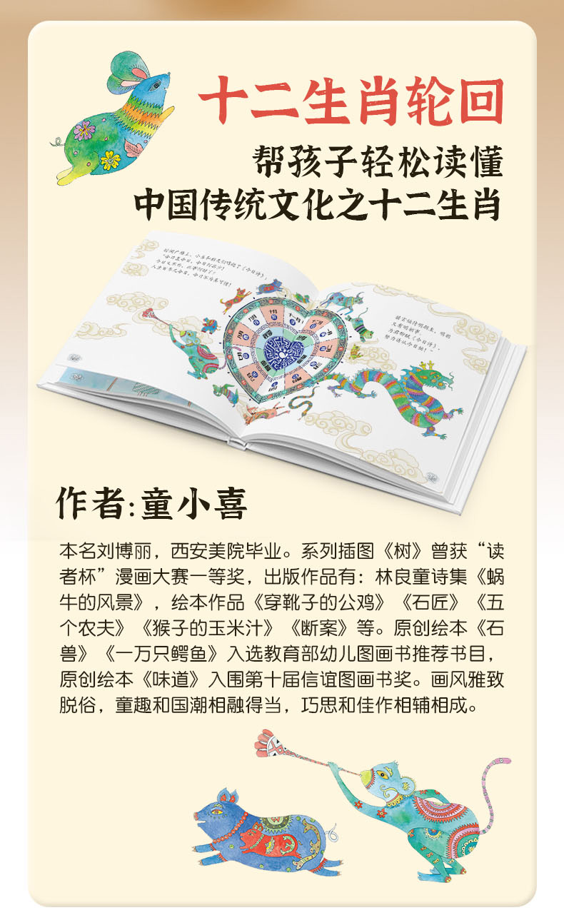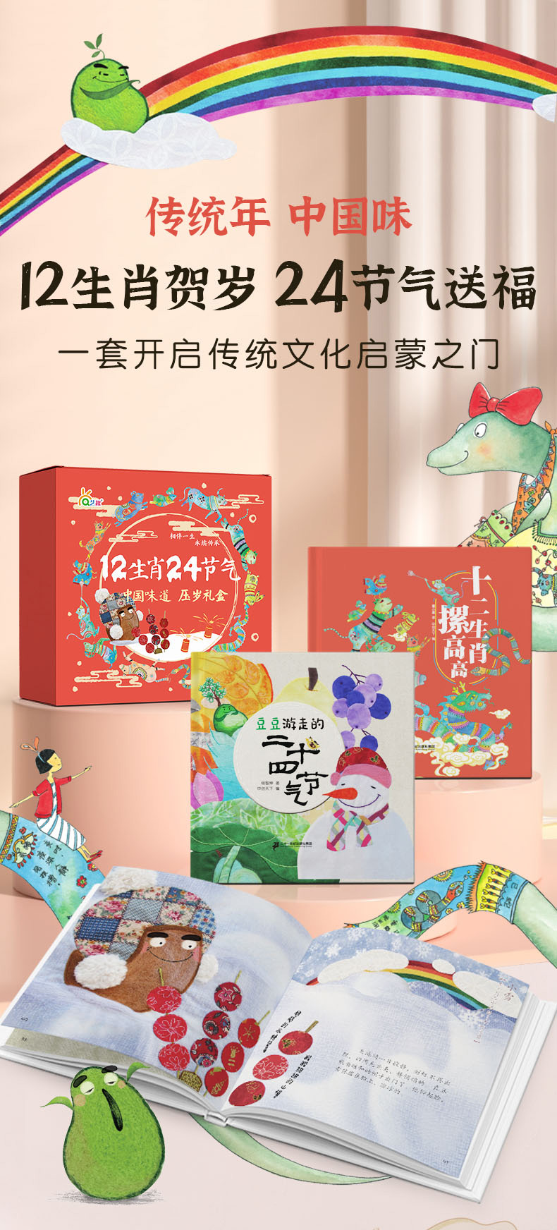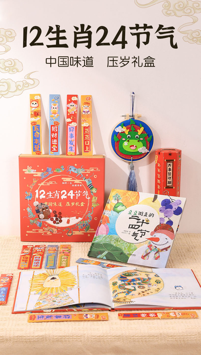 423书香浸润童年 中国味道原创绘本豆豆游走的24节气 12生肖摞高高